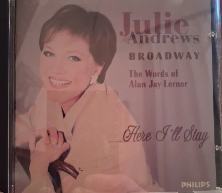 Selling a Julie Andrews Broadway CD, titled 'Here I'll Stay'. The words are by Alan Jay Lerner. It's a Philips CD.
