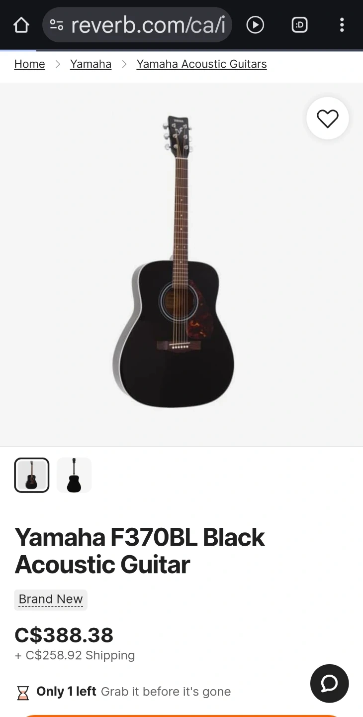 Buy & SellYamaha F370BL Black Acoustic Guitar & StandYamaha F370BL Black Acoustic Guitar & Stand$100Used Pickup Seton SEConditionGoodWHERE TO MEETSetonView MapSELLERBrandonSeton836 reviews0 chats·0 favorites·7 viewsSEND CHAT TO SELLERHi Brandon! I’m interested in your listing.Hi Brandon! I’m interested in your listing.Get the Karrot app to chatSign In to chat