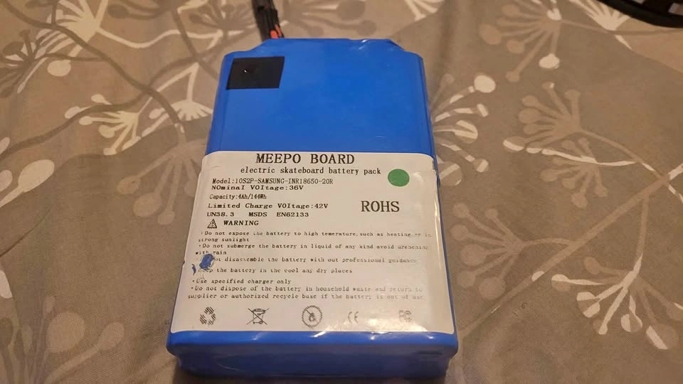 Meepo voyager v3 battery , or v2 , not quite sure. Please see images. Uses Samsung 20r 18650 cells, well maintained, always kept storage charge and shows full voltage indicating cells balanced. 36v 4ah eskate style flat battery pack.