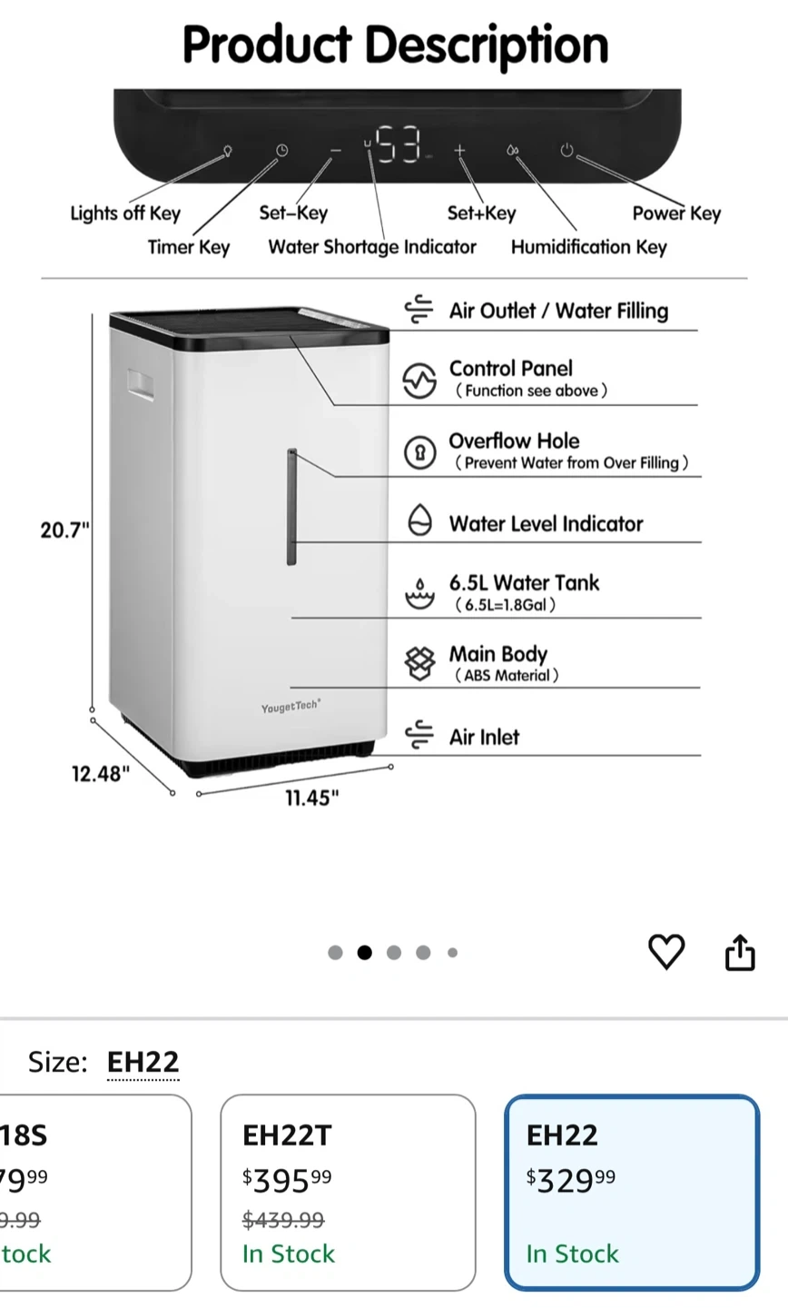 Selling a humidifier! It features a 6.5L water tank and is designed for spaces up to 1,250 sq ft. It also has whisper-quiet operation, perfect for maintaining a quiet environment. The humidifier has 7 speeds.
