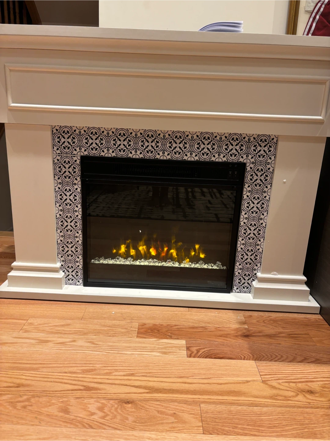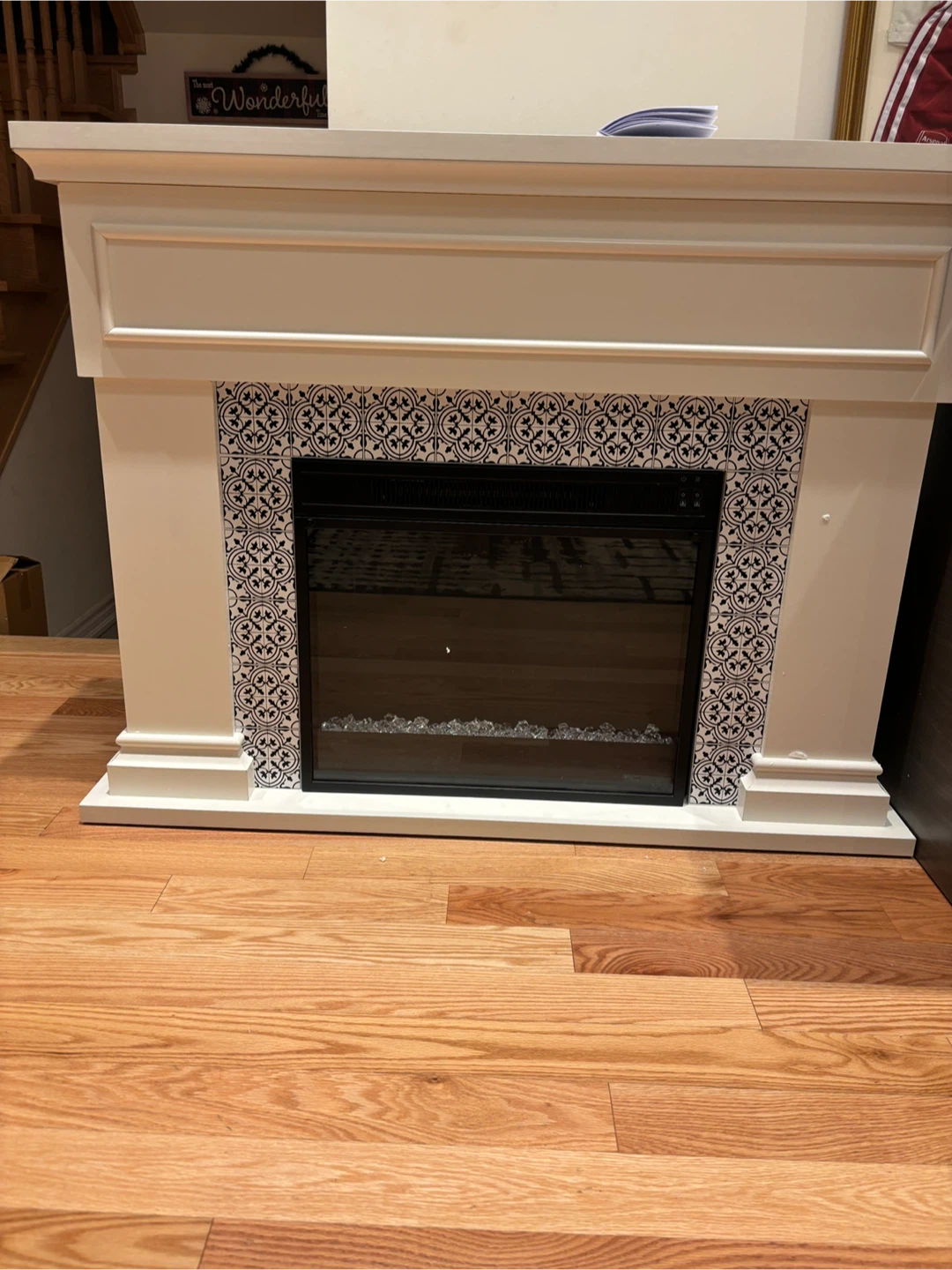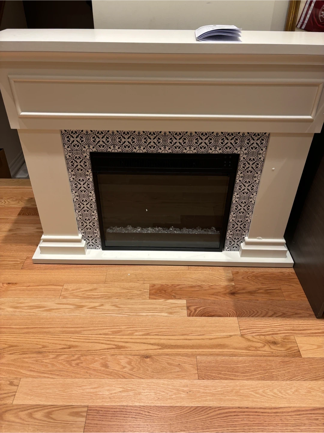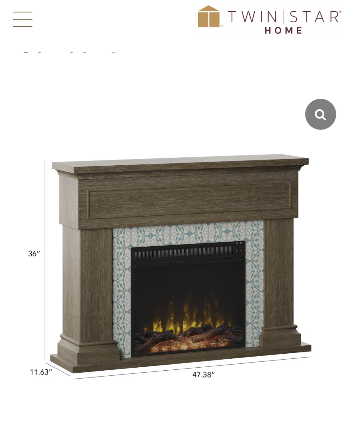 Twin Star Home electric fireplace! It's ready to warm up your space. The dimensions are approximately 47.38" wide, 36" high, and 11.63" deep. The model number is 23WM6768.. available for pickup and delivery