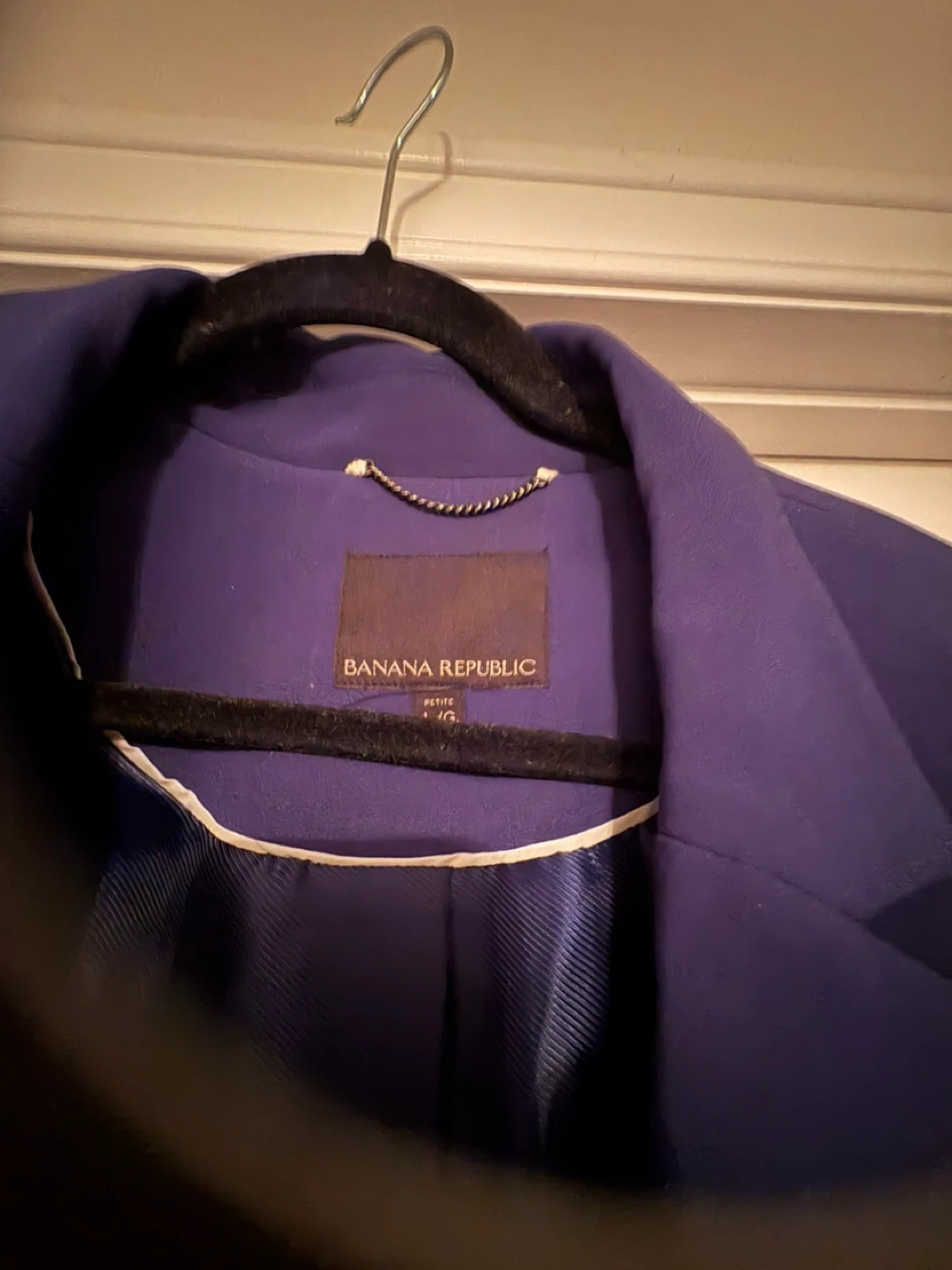 Selling a Banana Republic purple coat in size L It's in great condition and ready for a new owner! Very classy and elegant.