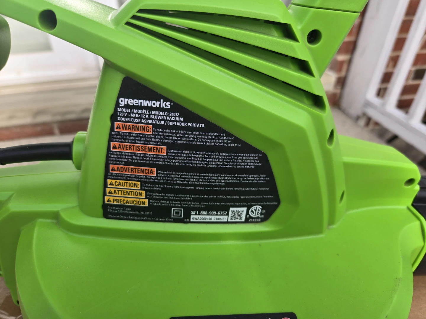 Selling a Greenworks All-Purpose Electric Corded Blower / Vacuum (235 MPH/380 CFM), 12-Amp Motor, 2-Speed Lightweight & Quiet for Yard Autumn Debris Leaf Dust Light Snow Cleanup, includes Metal Repeller. It's in great condition.