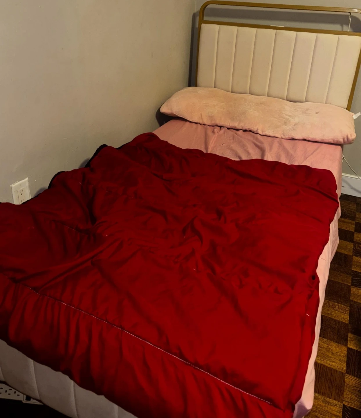 2 Twin Bed frame with built-in USB ports, great for charging your devices while you relax.You can't go wrong,if you have 2 young ones,this is the right bed for them!❤️$50 FOR 2 TWIN BEDS