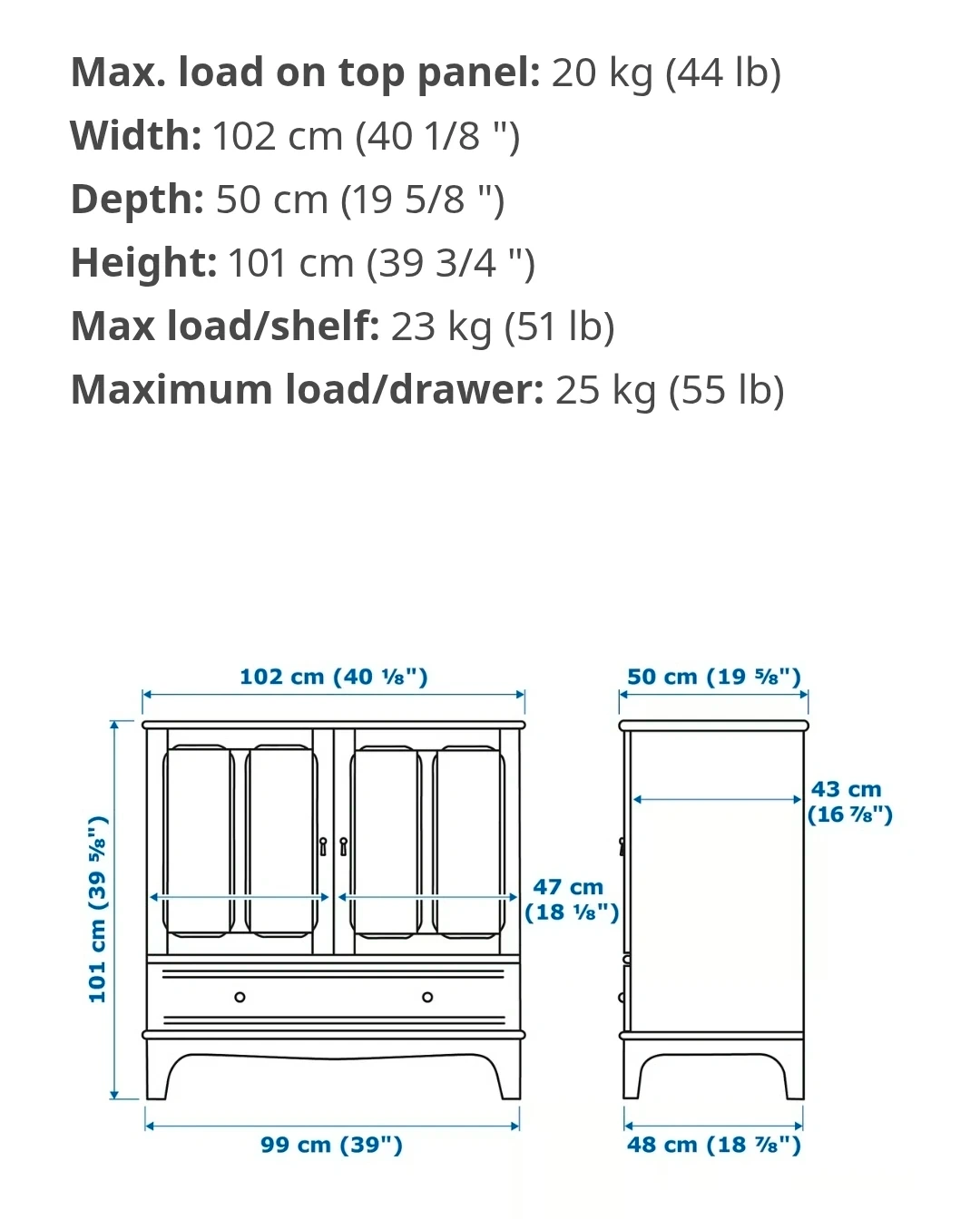 This dark green cabinet features two doors and a drawer, perfect for storage.