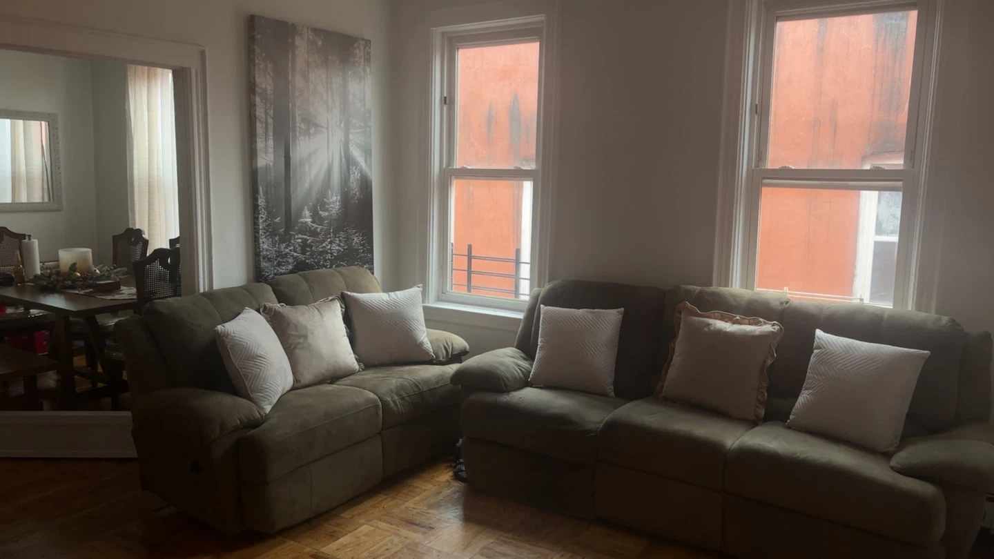 Selling a comfy olive green sofa and loveseat set! They're in good condition and perfect for a living room setup. The color is a nice neutral that goes with lots of decor styles. Pillows included!