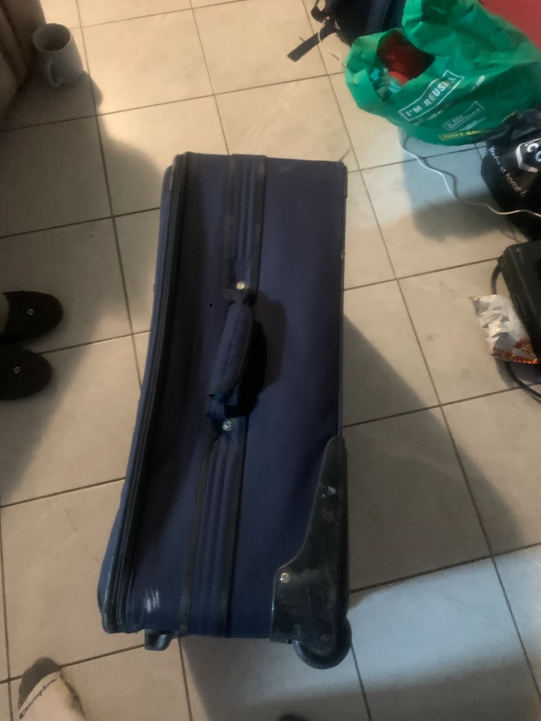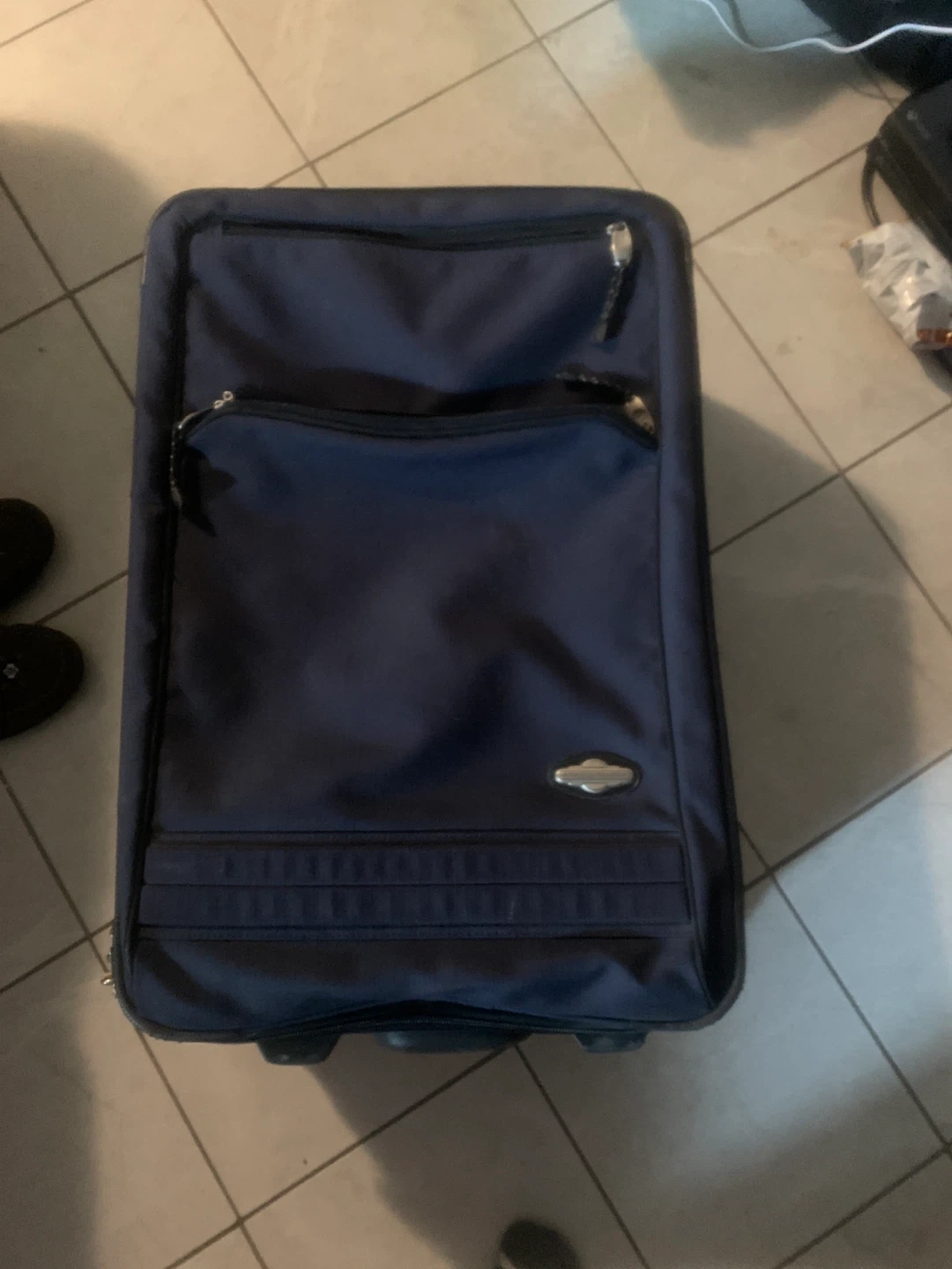 Selling a gently used navy blue rolling suitcase. It's in good condition and ready for its next adventure! Perfect for weekend getaways or longer trips