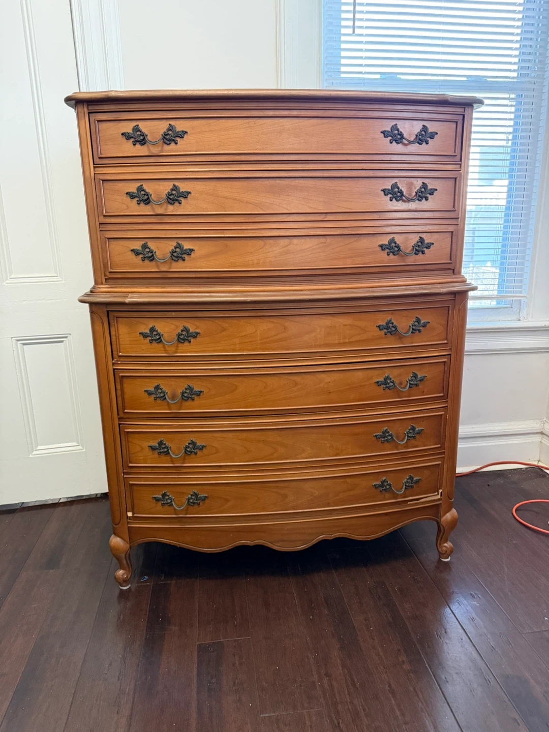 Selling a vintage wooden chest of drawers. It features a classic design with multiple drawers, perfect for adding a touch of elegance to any room. The chest is in good condition and ready to use!