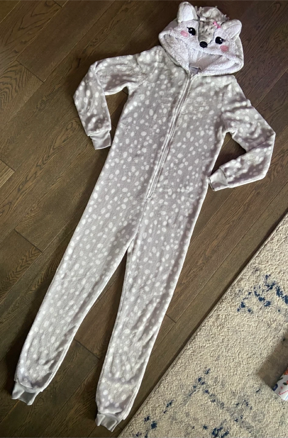 Super cute Jellyfish Kids onesie with a deer design! It's in excellent condition and perfect for keeping cozy. The onesie is grey with white spots and has an adorable deer hood. Size 10/12. EUC and smk-free. Pick up north end St Catharines near Vine/Linwell
