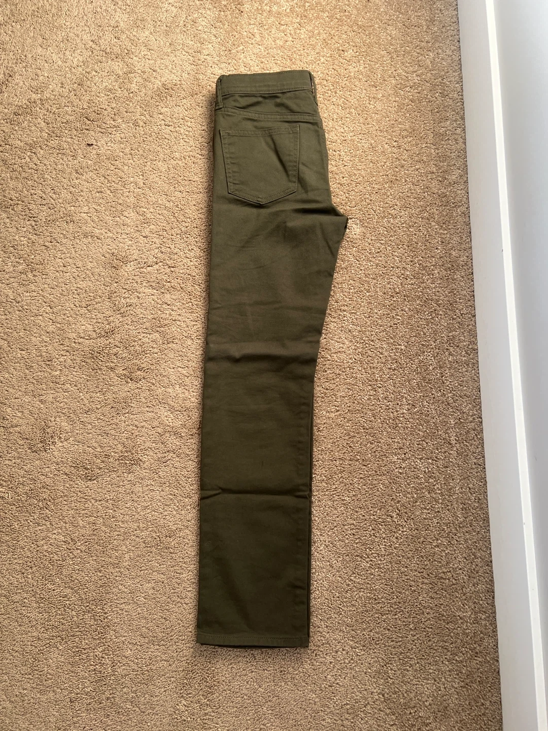 Selling a pair of Old Navy jeans in olive green! They're size 14 for youth & kids and have a slim fit to keep the fashion remarkable than ever. The material has a 360° stretch, making them super comfy and robust for all-day purposes!