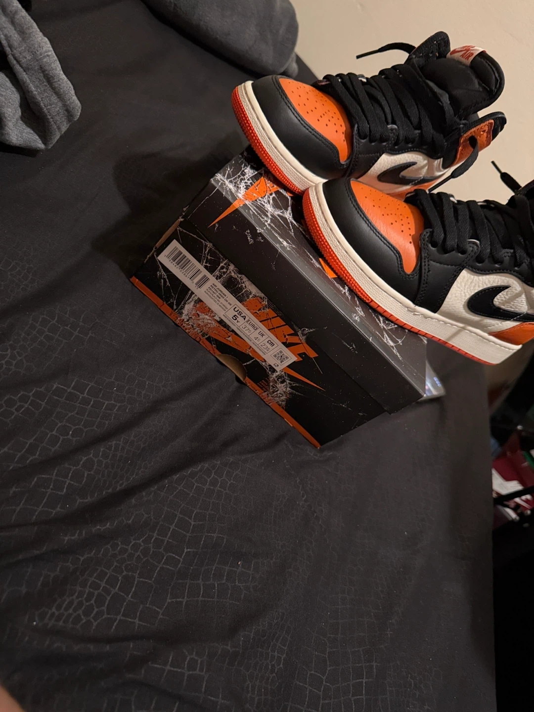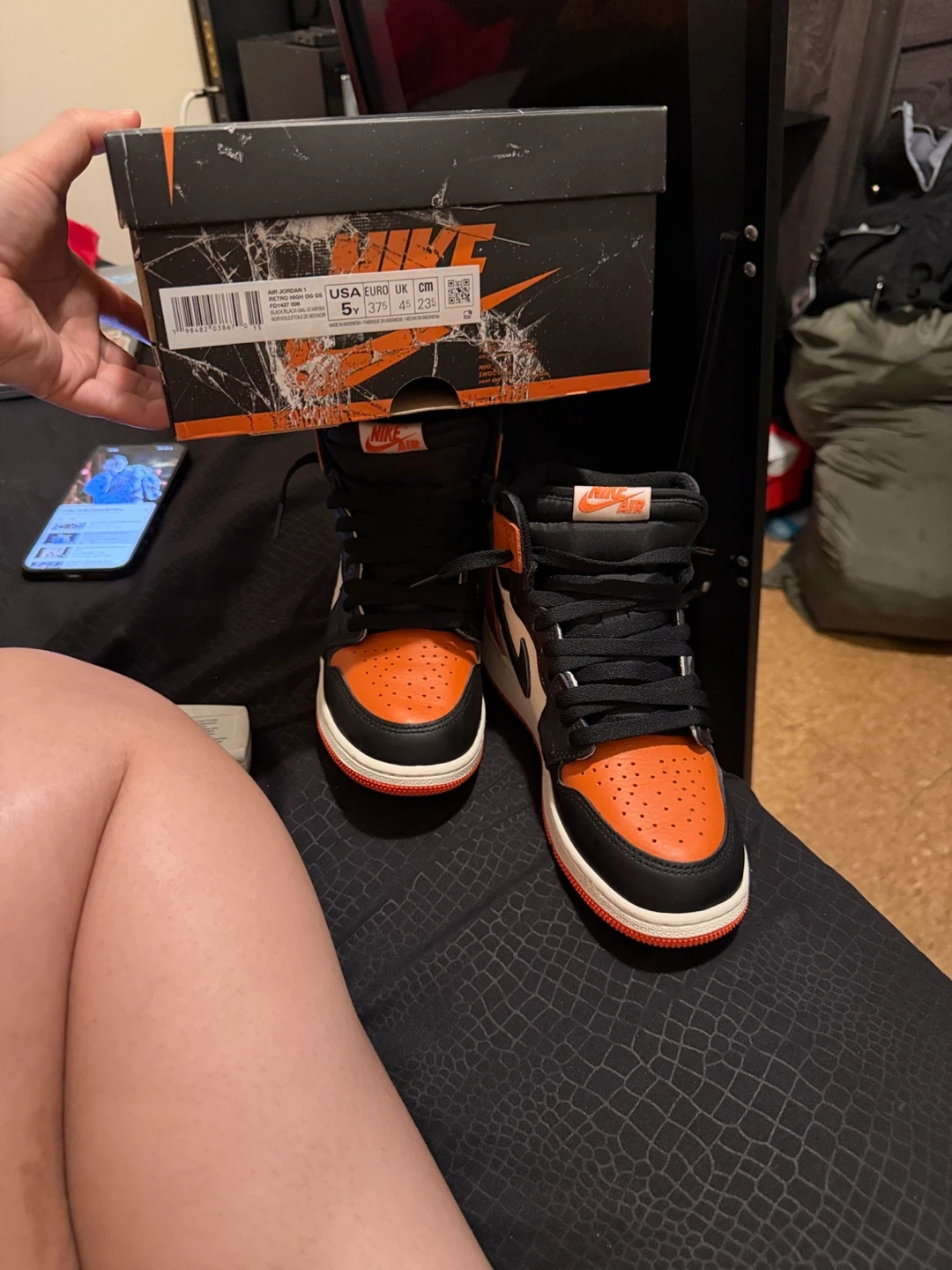 Selling a pair of Nike Air Jordan 1 Retro High OG Shattered Backboard in size 5Y. These are in great condition and come with the original box!