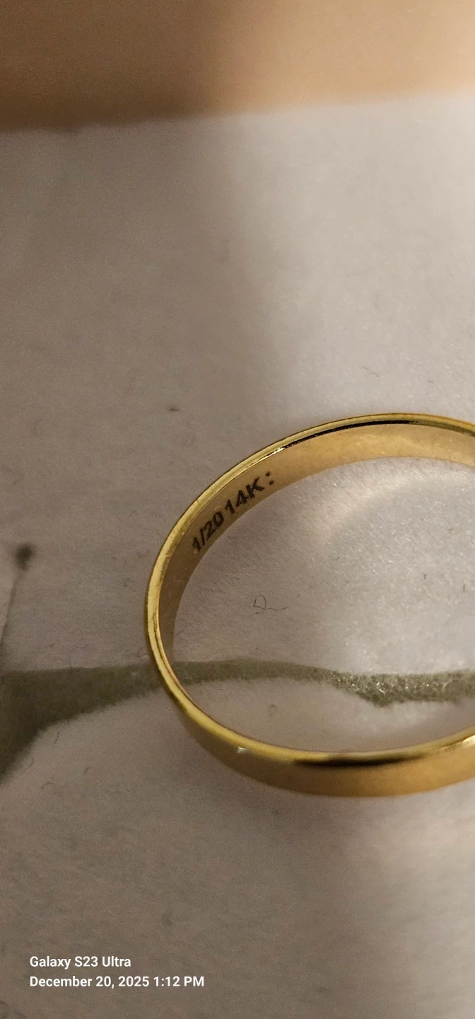 14K solid gold band ring with a clean, minimalist design. Marked 14K / 1/20 (see photos).