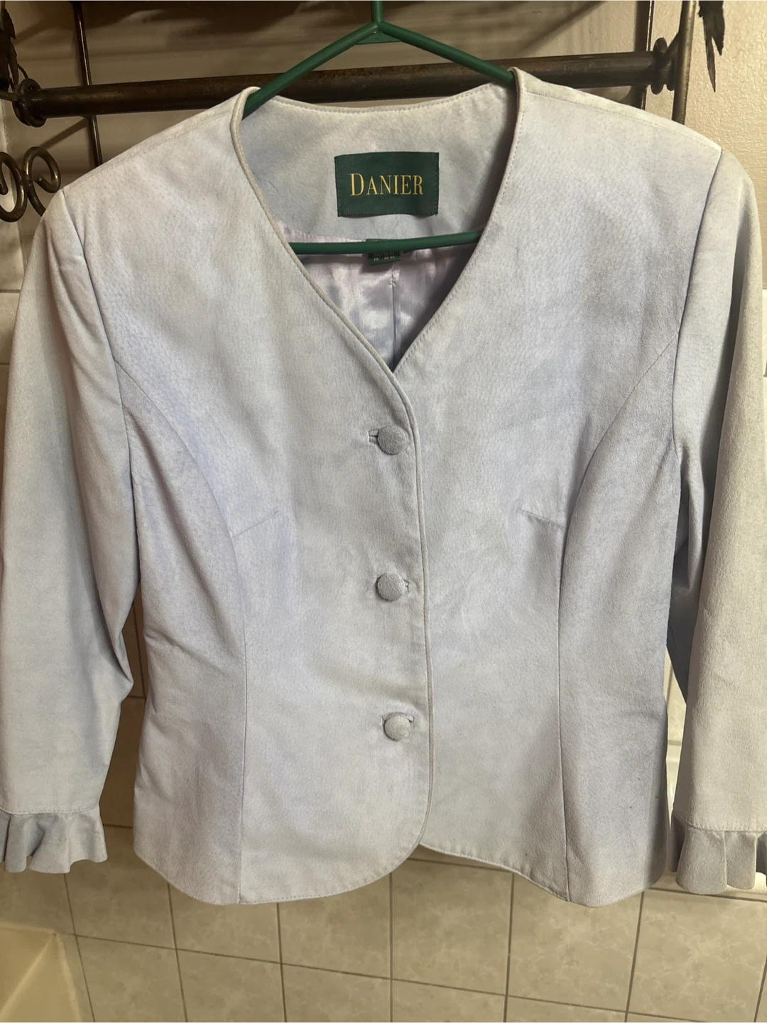 Buy & SellDanier Powder Blue Suede Ruffle Skirt & JacketDanier Powder Blue Suede Ruffle Skirt & Jacket$45Danier 2pc Suede Suit in a beautiful baby blue colour!ConditionGoodSize12-14BrandDanierWHERE TO MEETParkwoods VillageView MapSELLERLorraineParkwoods150 reviews0 chats·0 favorites·13 viewsSEND CHAT TO SELLERHi Lorraine! I’m interested in your listing.Hi Lorraine! I’m interested in your listing.Get the Karrot app to chatSign In to chat