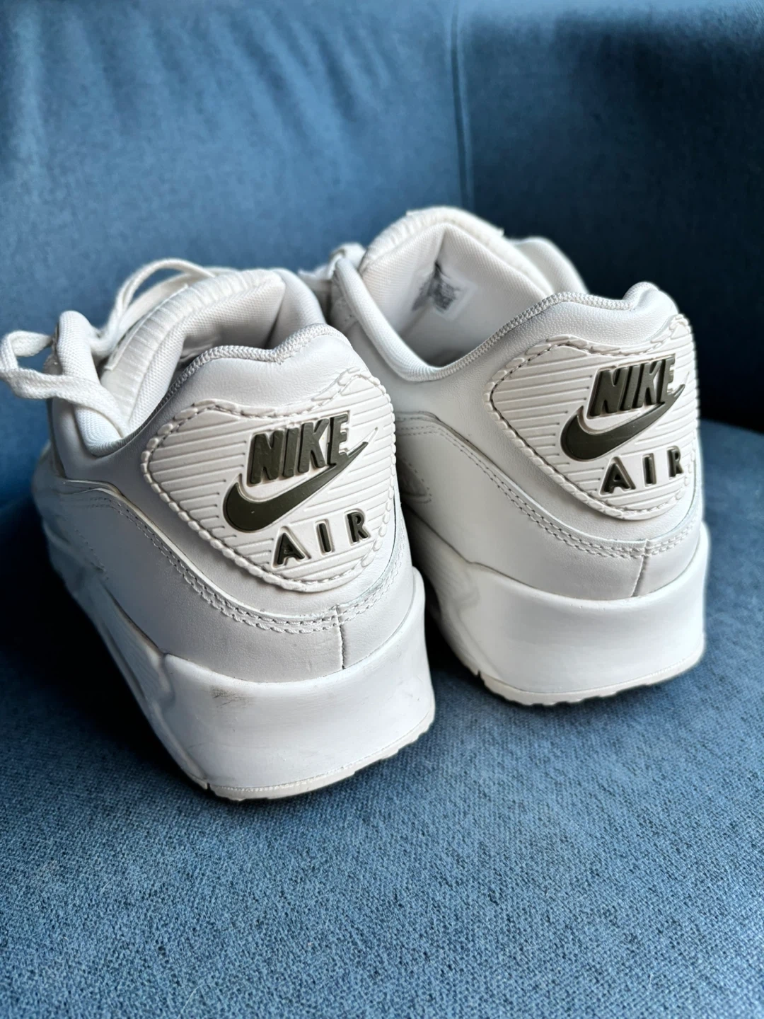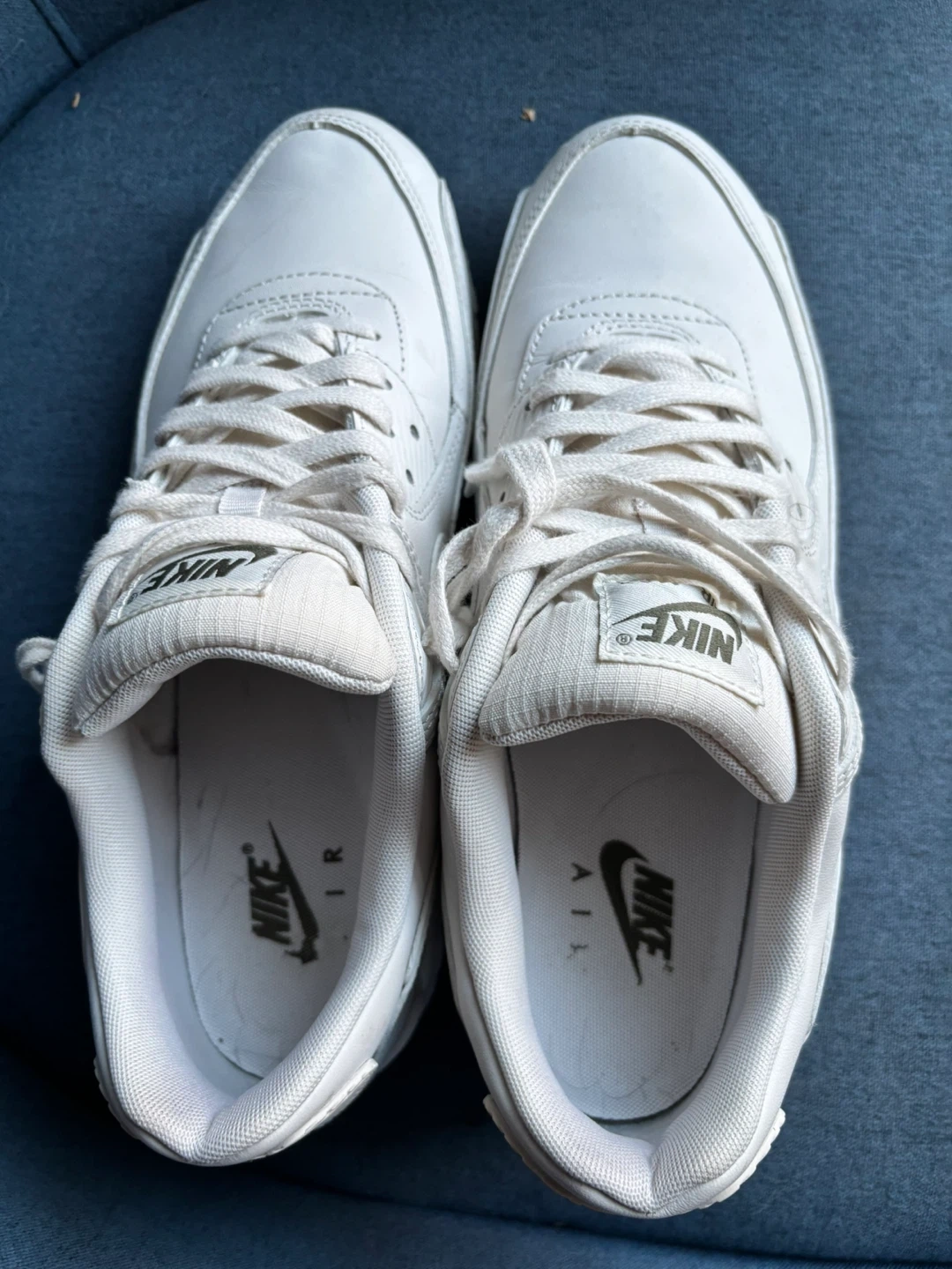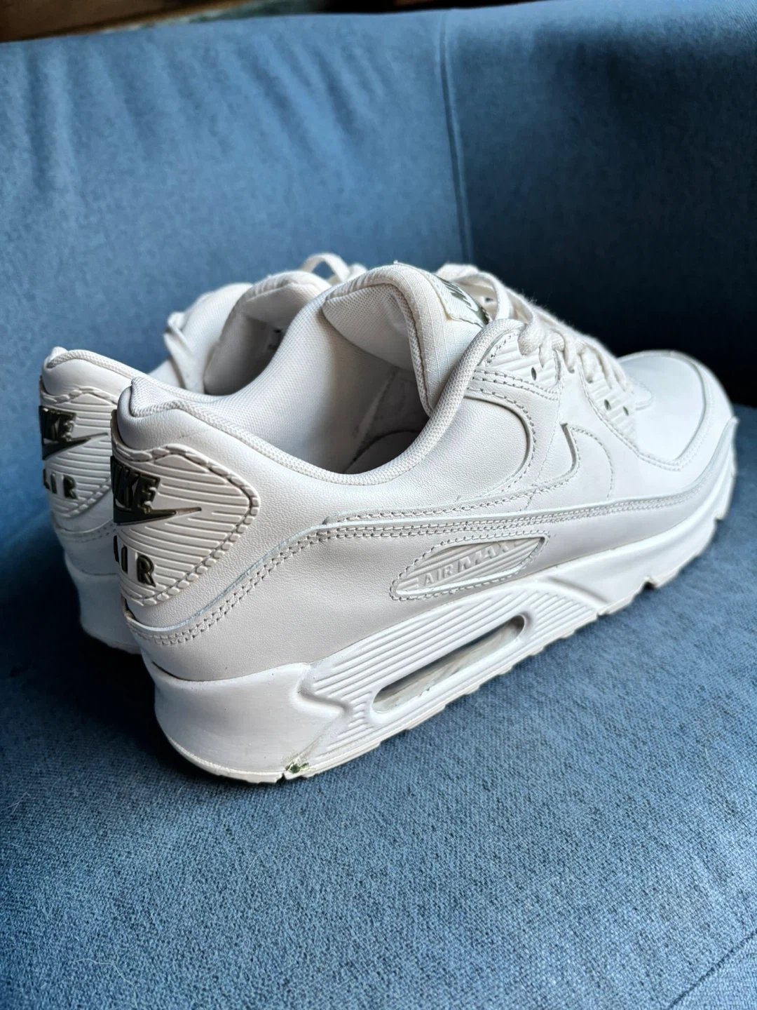 Selling a pair of Nike Air Max 90 sneakers in white. They're in good condition and ready for a new owner! The classic design is always in style.