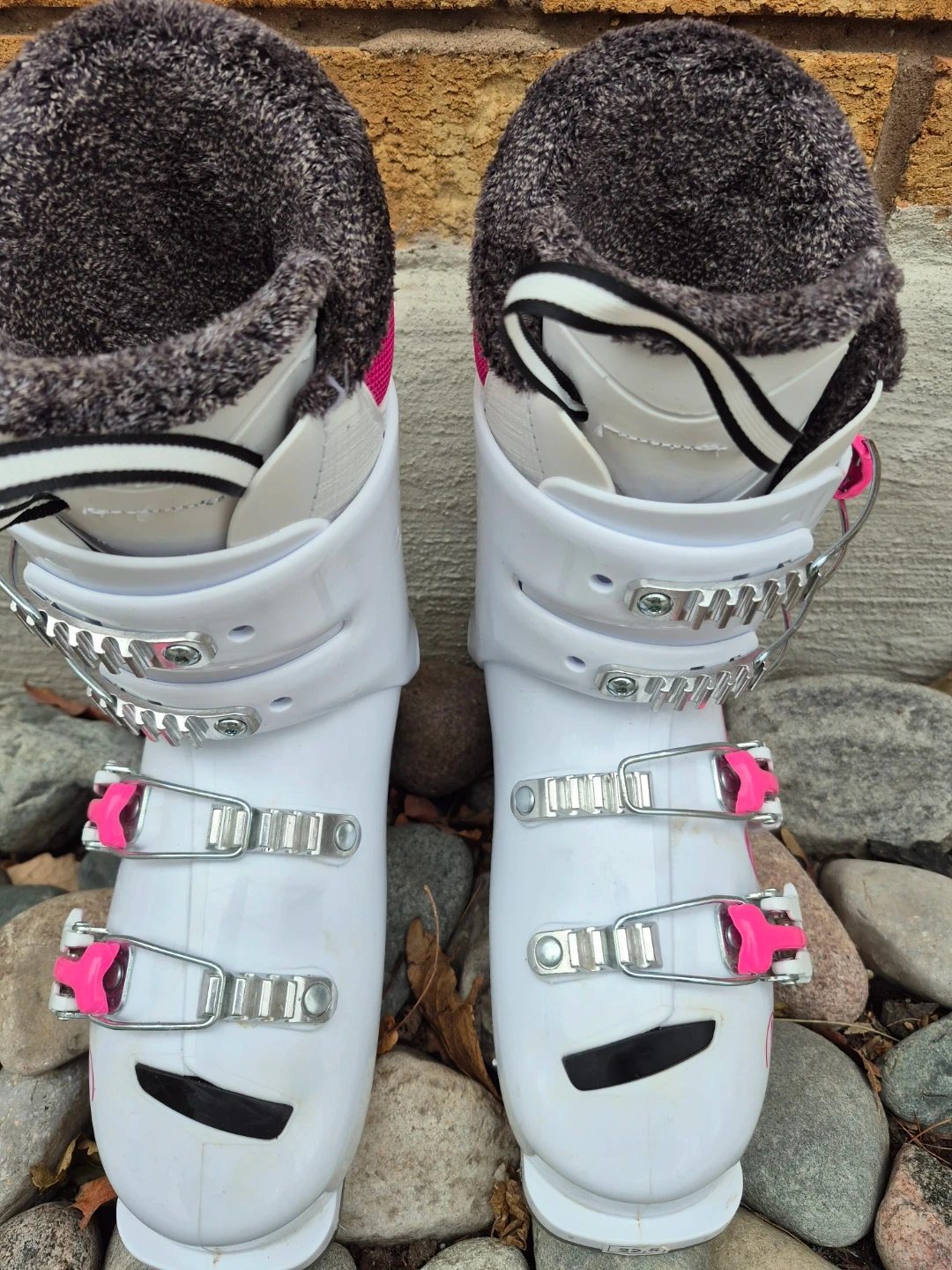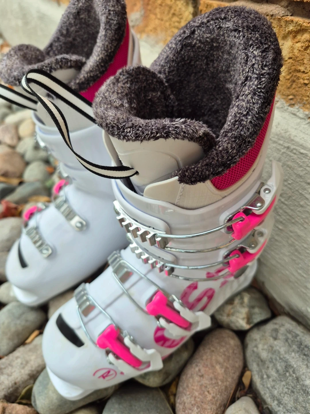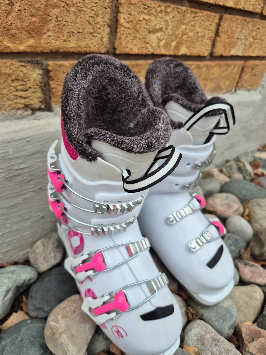 Selling a pair of quality nramd name Rossignol ski boots in white and pink! They are basically brand *NEW*. Fantastuc quaoity, comfirt and warmth. Made in Europe. They are size 225/265mm. These boots are ready for the slopes! Great find. Save $$$ and pick them up before they are gone.