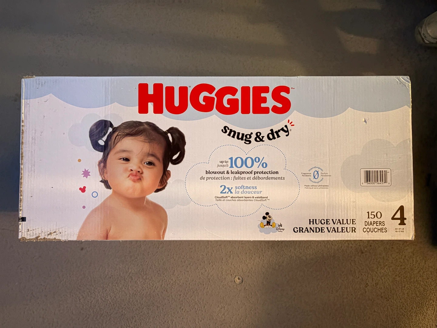 Selling a brand new box of Huggies Snug & Dry diapers, size 4! The box contains 150 diapers.