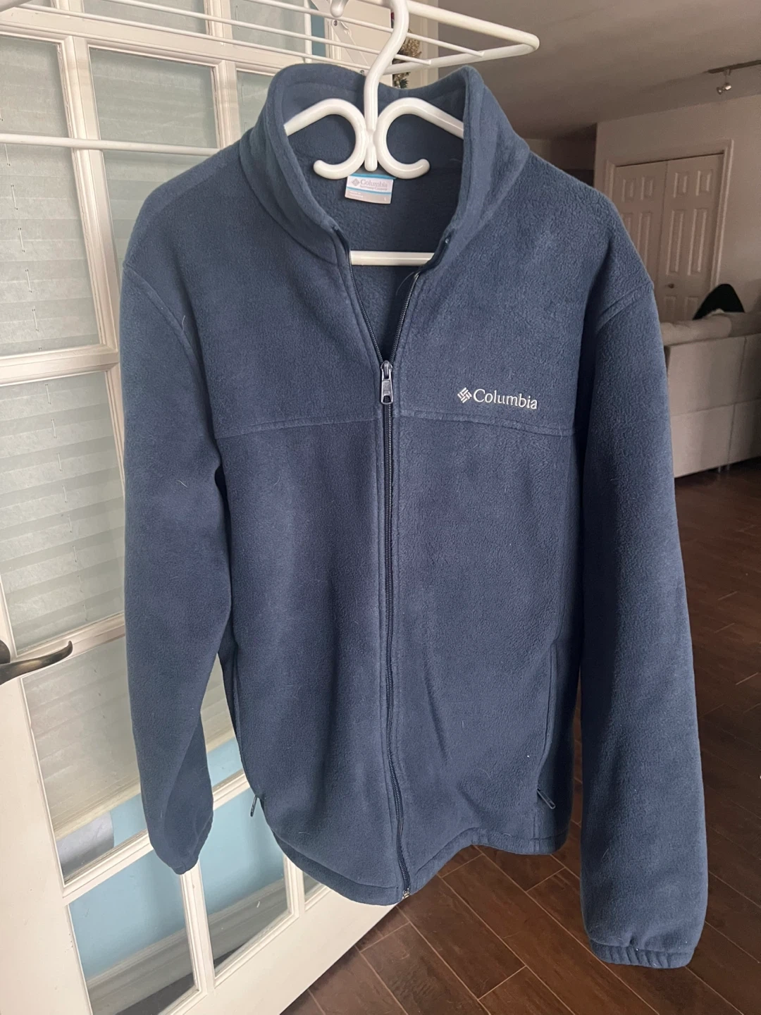Cozy Columbia fleece jacket in size L! It's a nice navy colour and in great condition. Perfect for layering or wearing on its own during cooler days