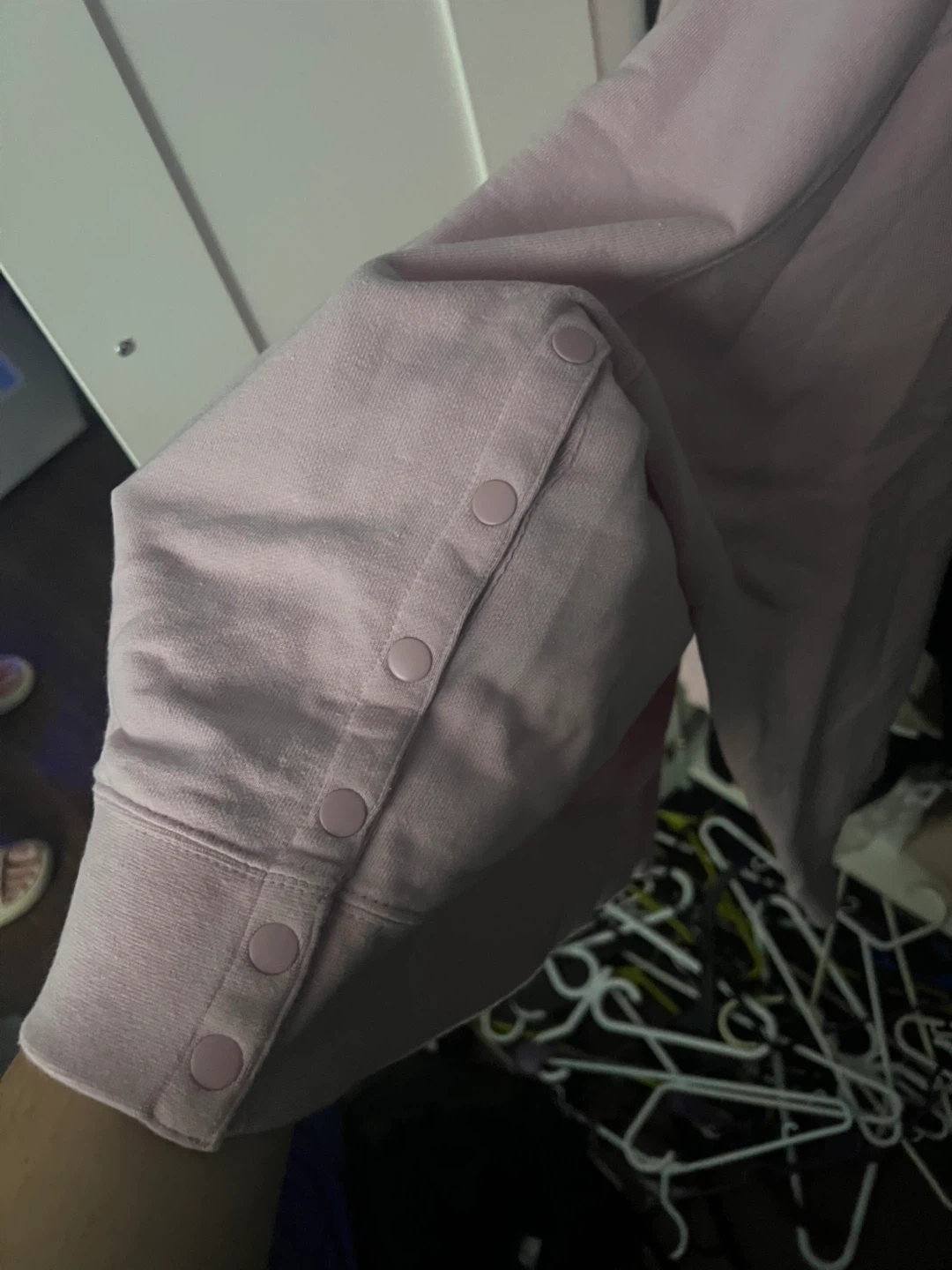 Selling a cute Roots crewneck sweatshirt in a lovely light pink! It's a size large and has some unique button detailing on the sleeves. Perfect for cozy days!