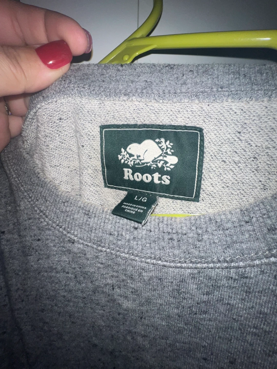 Selling a comfy Roots long sleeve shirt in grey! It's a size large and in great condition. Perfect for layering or wearing on its own!
