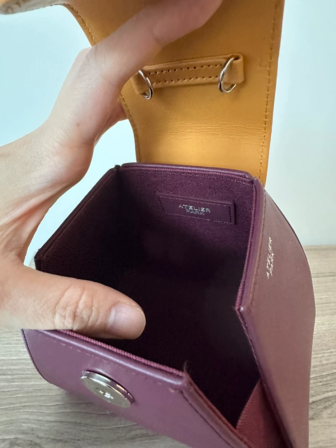 Selling a cute Atelier Park handbag in a beautiful burgundy and tan colour combination. New and comes with original cloth bag.