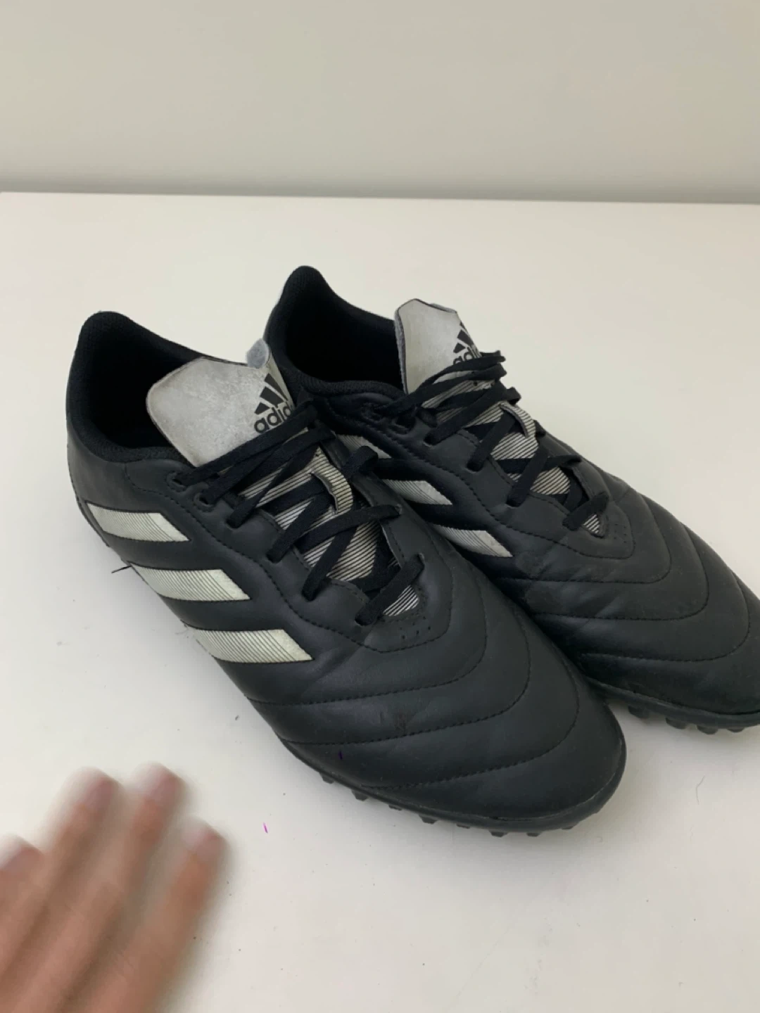 Selling a pair of Adidas Copa turf soccer shoes in black. They are in good condition and ready for the field!
