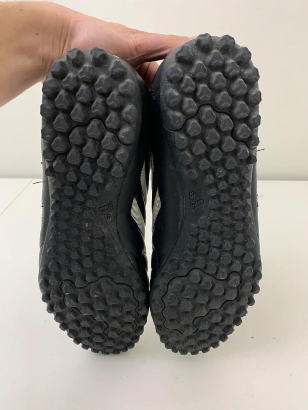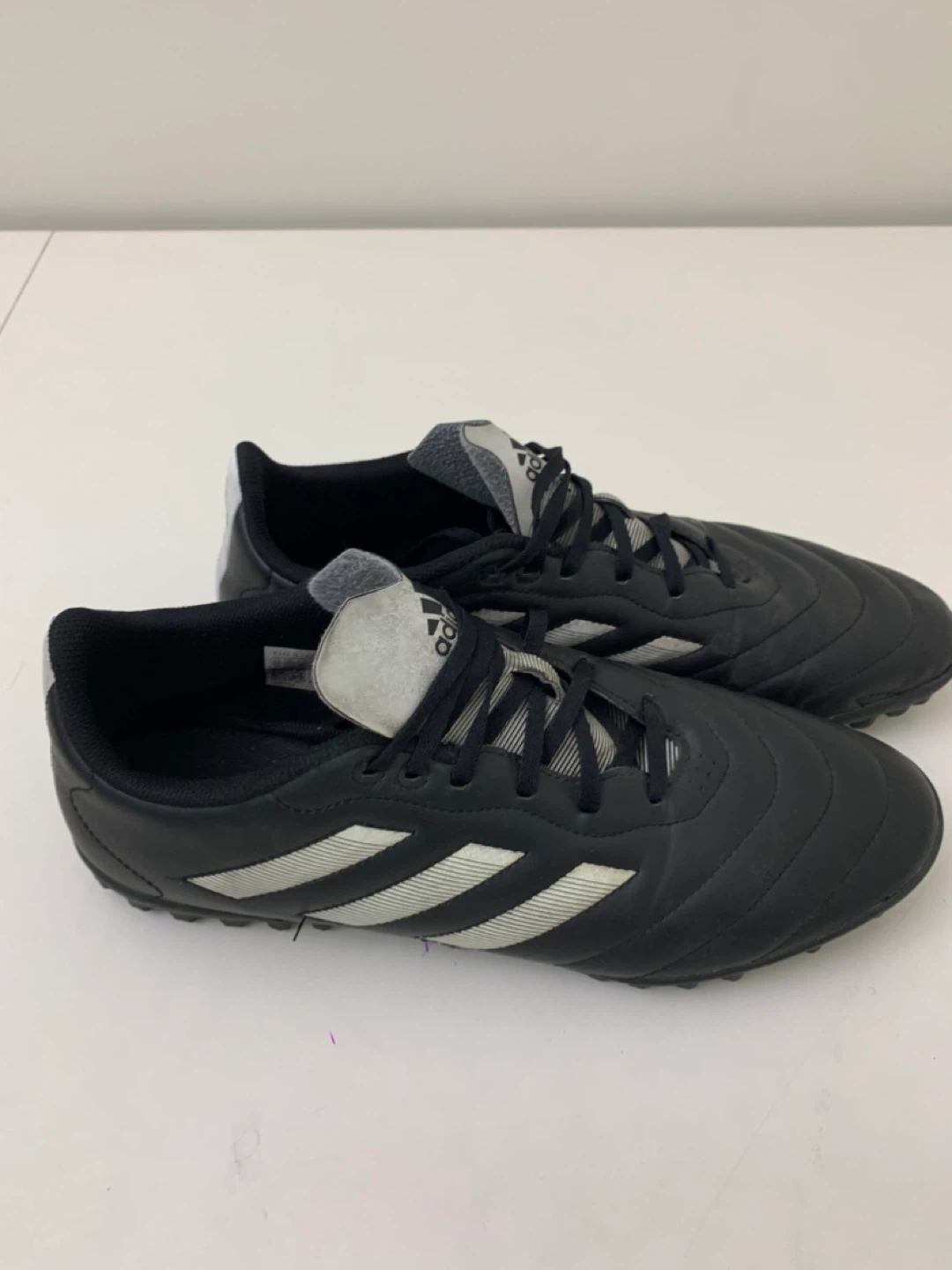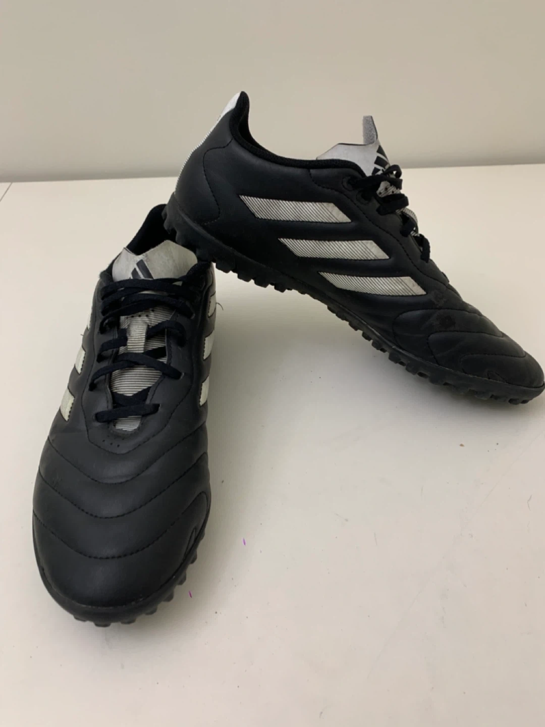Selling a pair of Adidas Copa turf soccer shoes in black. They are in good condition and ready for the field!