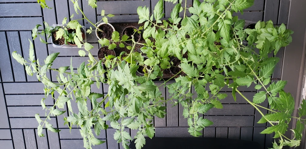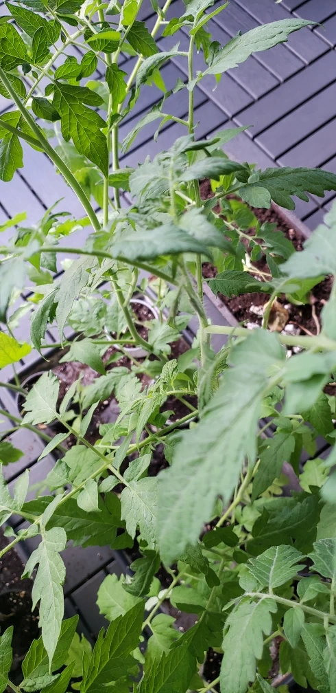 Healthy and organic tomato plants. They are big now, and have the flower buds!