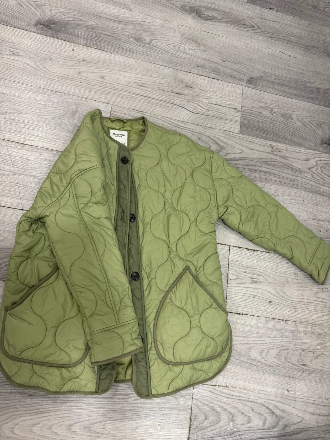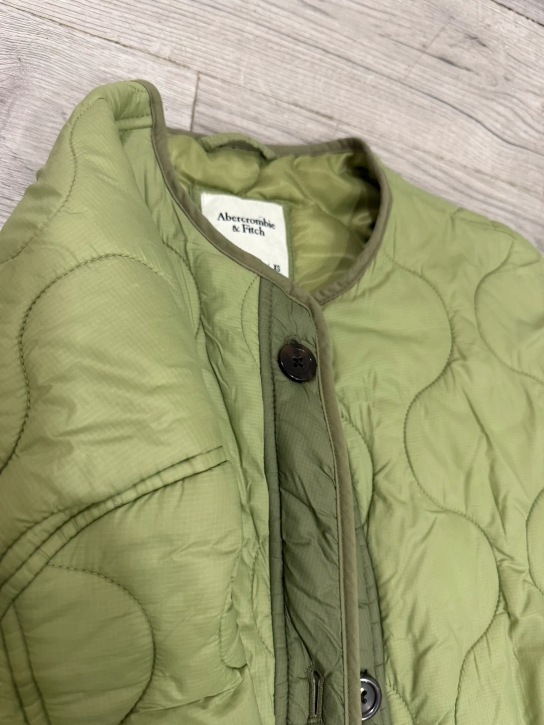Here's an Abercrombie & Fitch quilted jacket in size XS. It's a lovely light green colour and in great condition. Perfect for layering or wearing on its own during milder weather. It's been gently used and is ready for a new home!