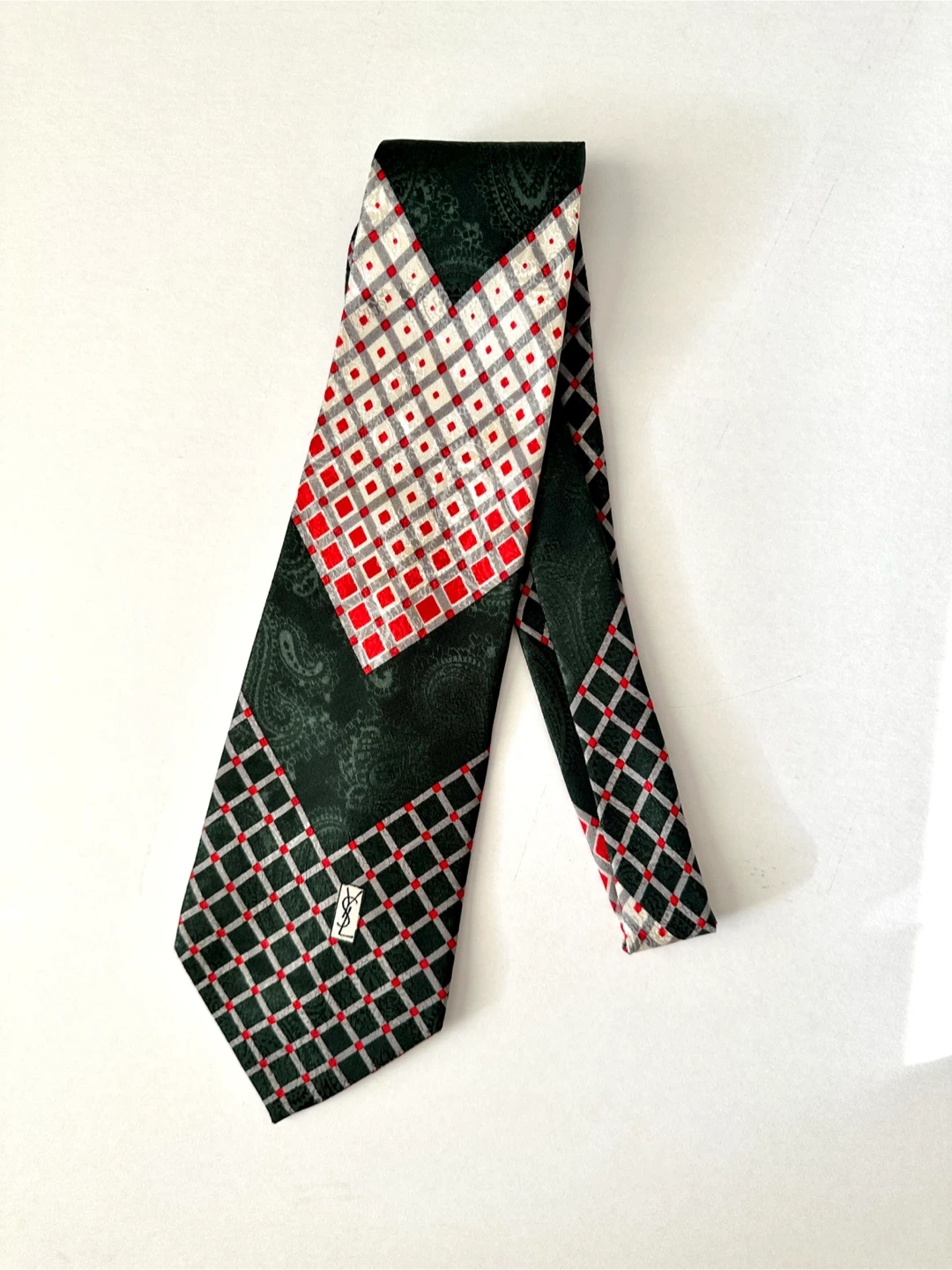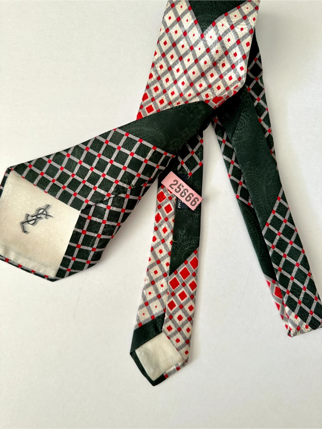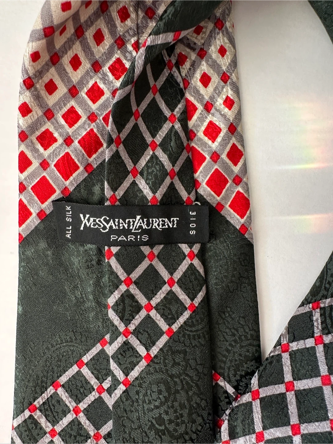 100% silk red and green Yves Saint Laurent tie. Green parts have beautiful tone on tone paisley pattern.