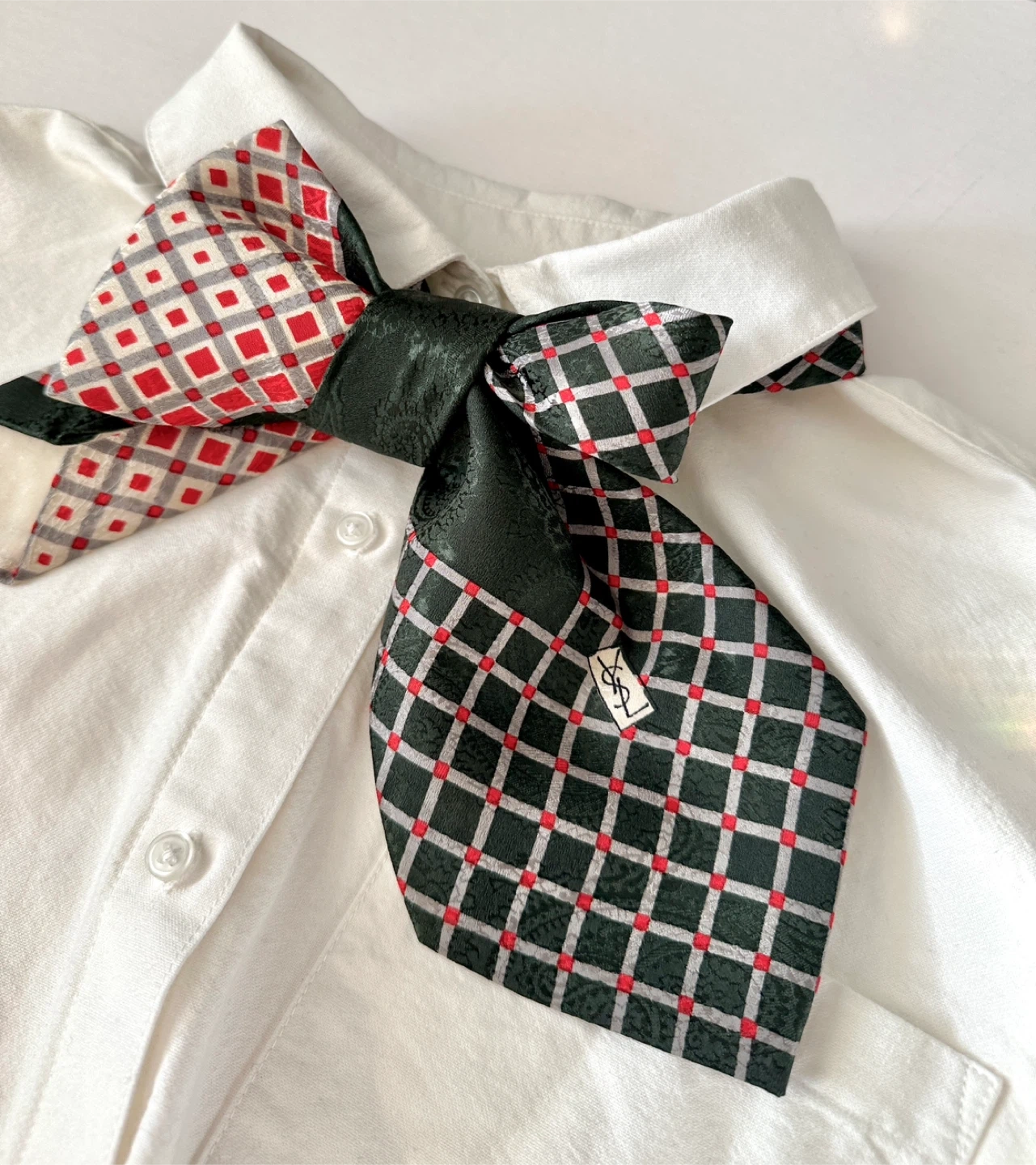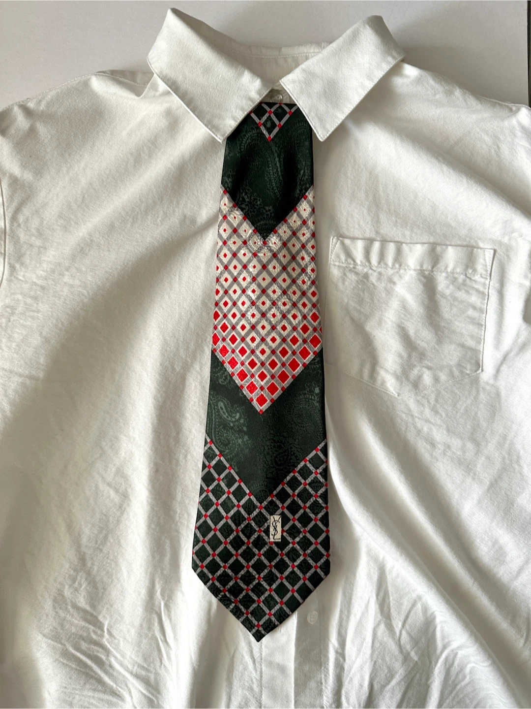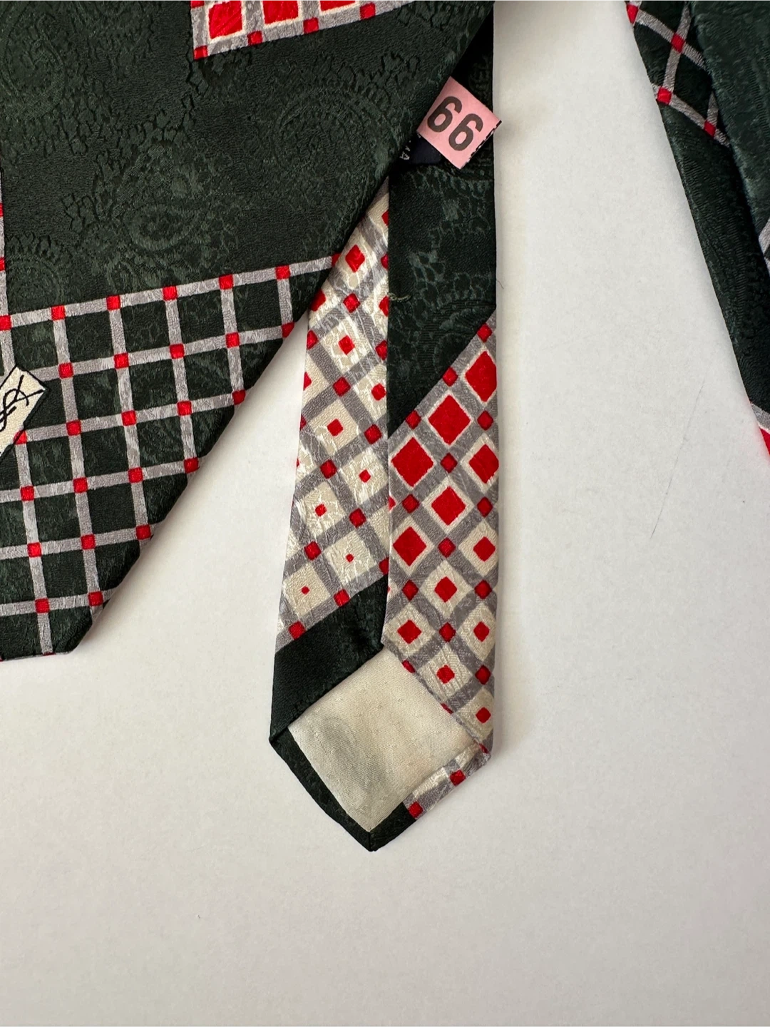 100% silk red and green Yves Saint Laurent tie. Green parts have beautiful tone on tone paisley pattern.