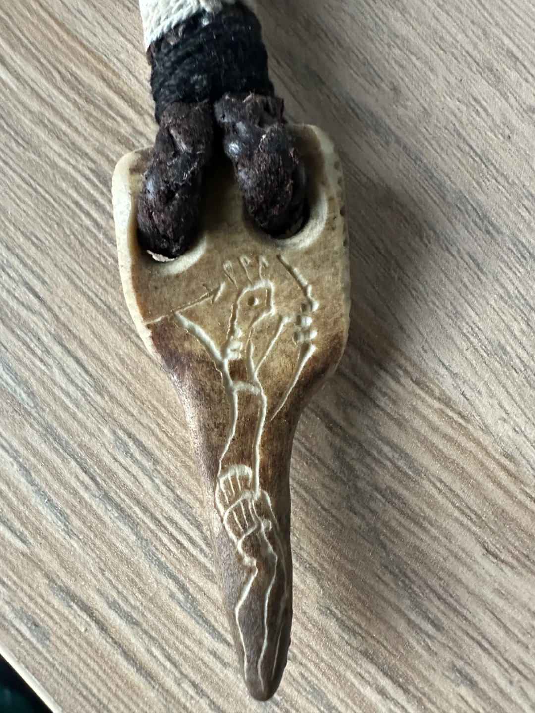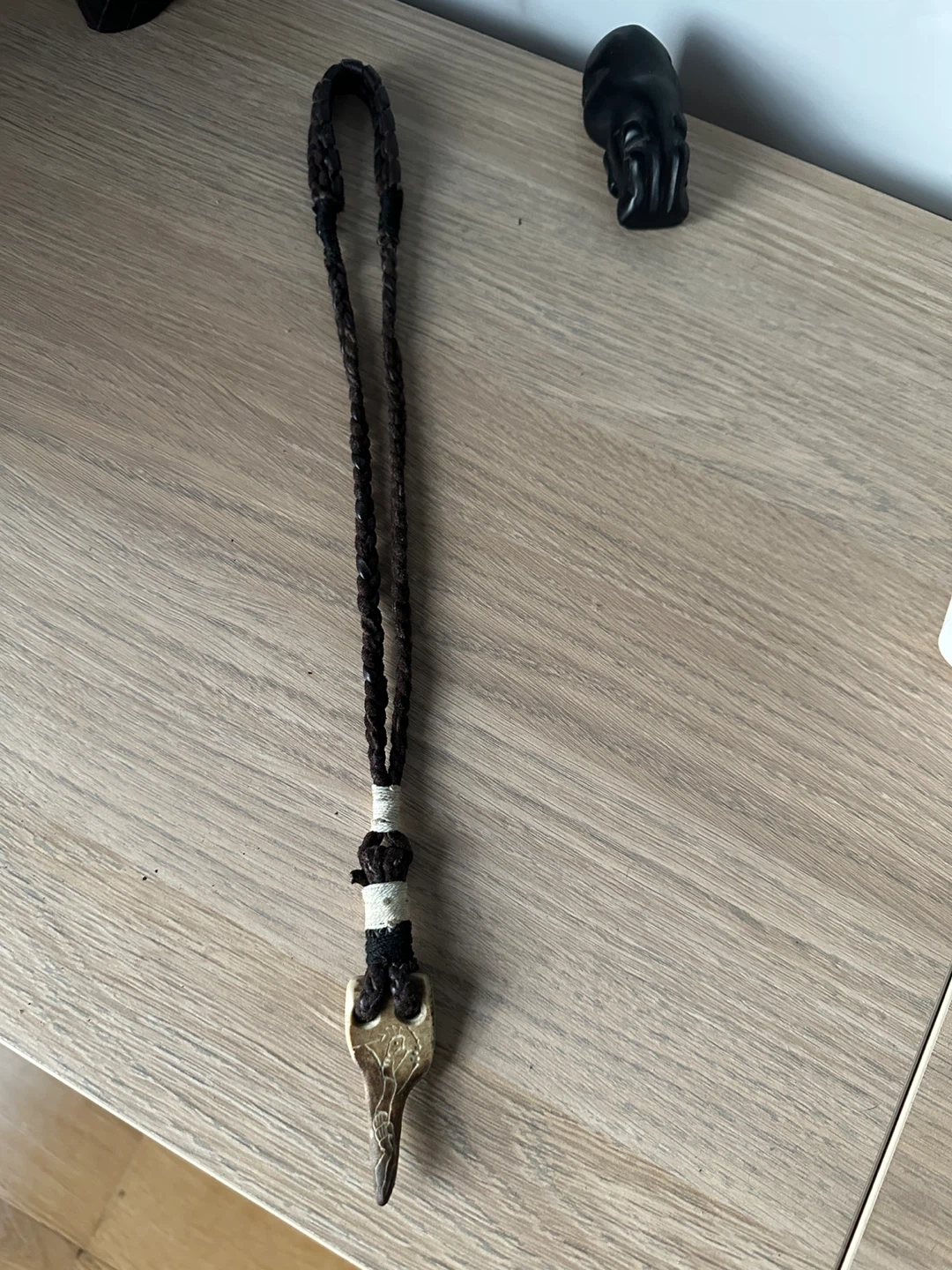 A beautiful hand carved bone & leather necklace from Sami indigenous artisan in northern sweden. 30yrs old.