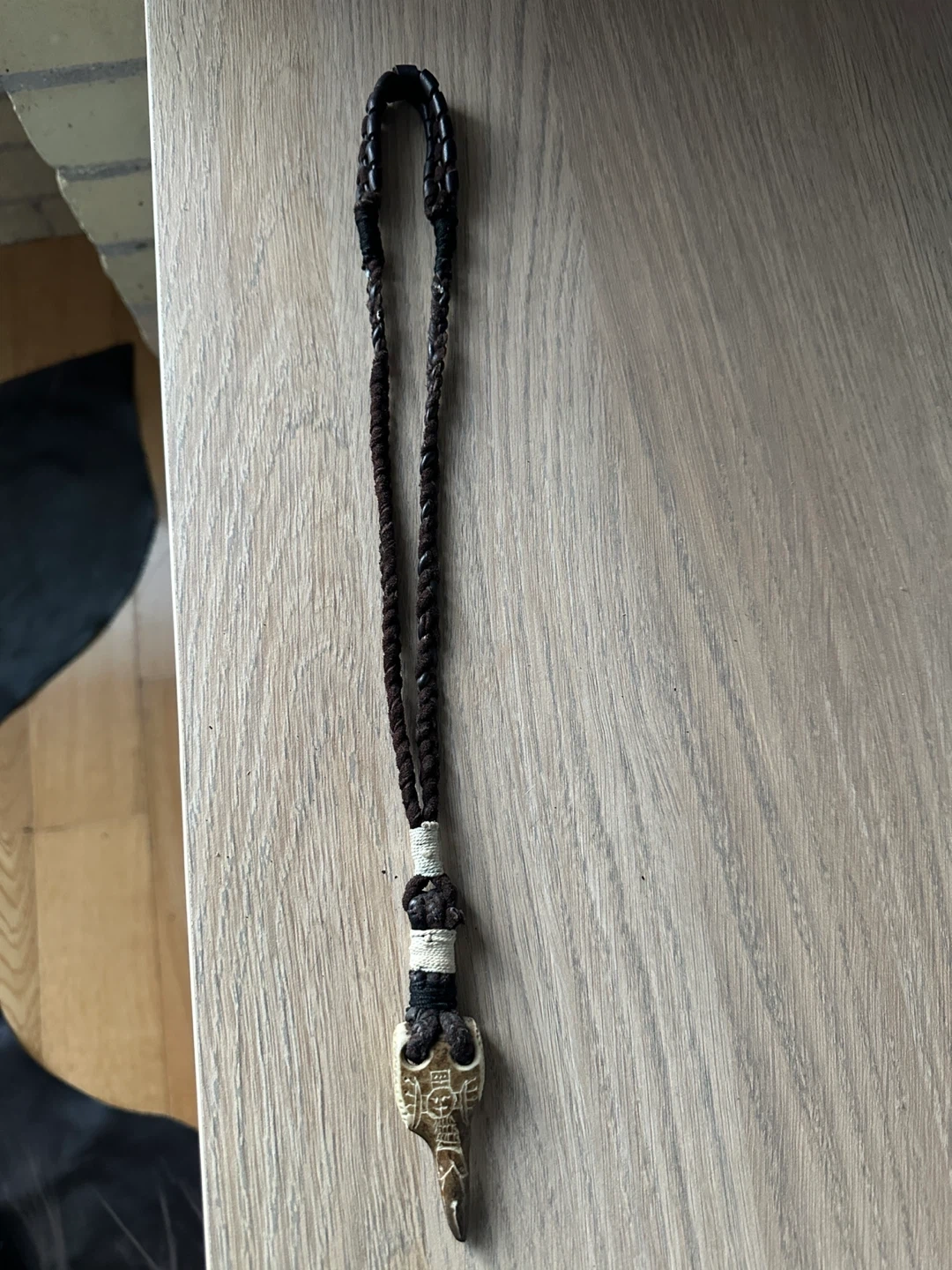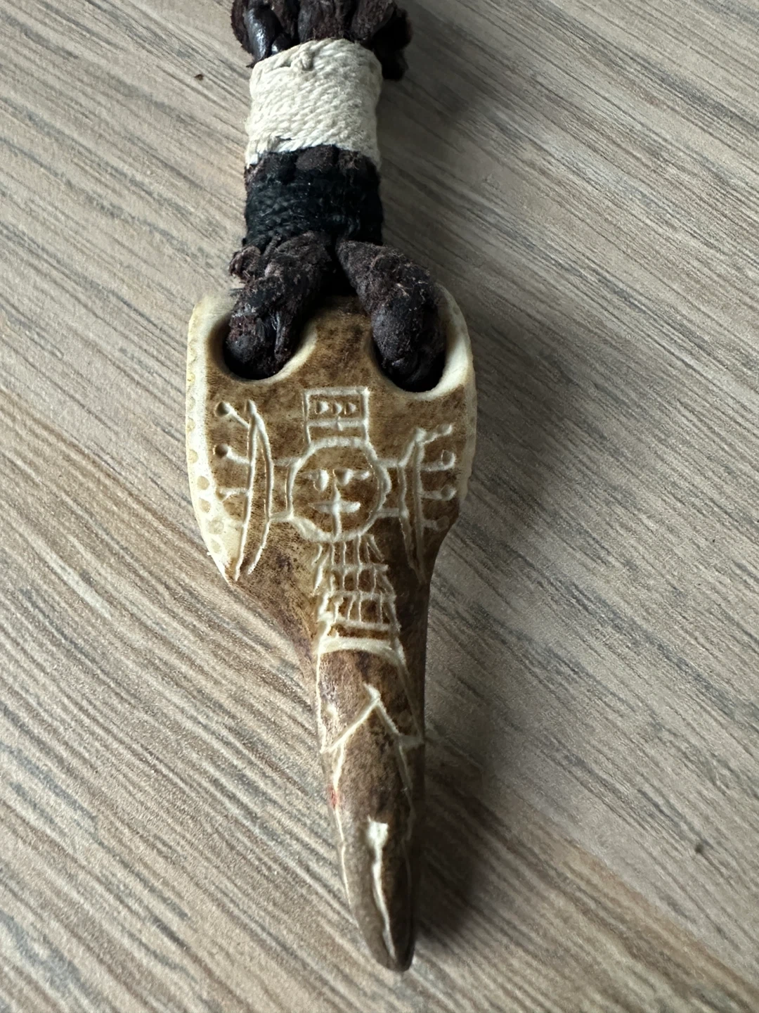 A beautiful hand carved bone & leather necklace from Sami indigenous artisan in northern sweden. 30yrs old.