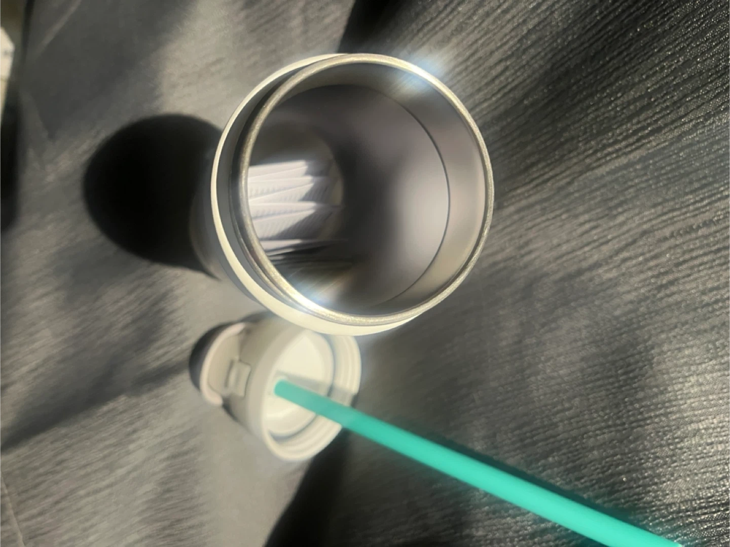 This Owala FreeSip water bottle is white and grey. It's made with a stainless steel interior and has a capacity of 24 oz (710 ml). The FreeSip spout allows for easy drinking.