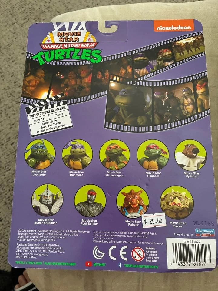 Teenage Mutant Ninja Turtles Movie Star Foot Soldier by Playmates Toys. Approximately 4 inches tall. Authentically detailed to match the 1990s movie appearance, fully poseable, and includes signature weapon accessories. Blister card packaging with classic "Movie Star" graphics. Card is in good condition with a small crease on the bottom left (see photo). Sells for $20 plus on line (see attached photo).