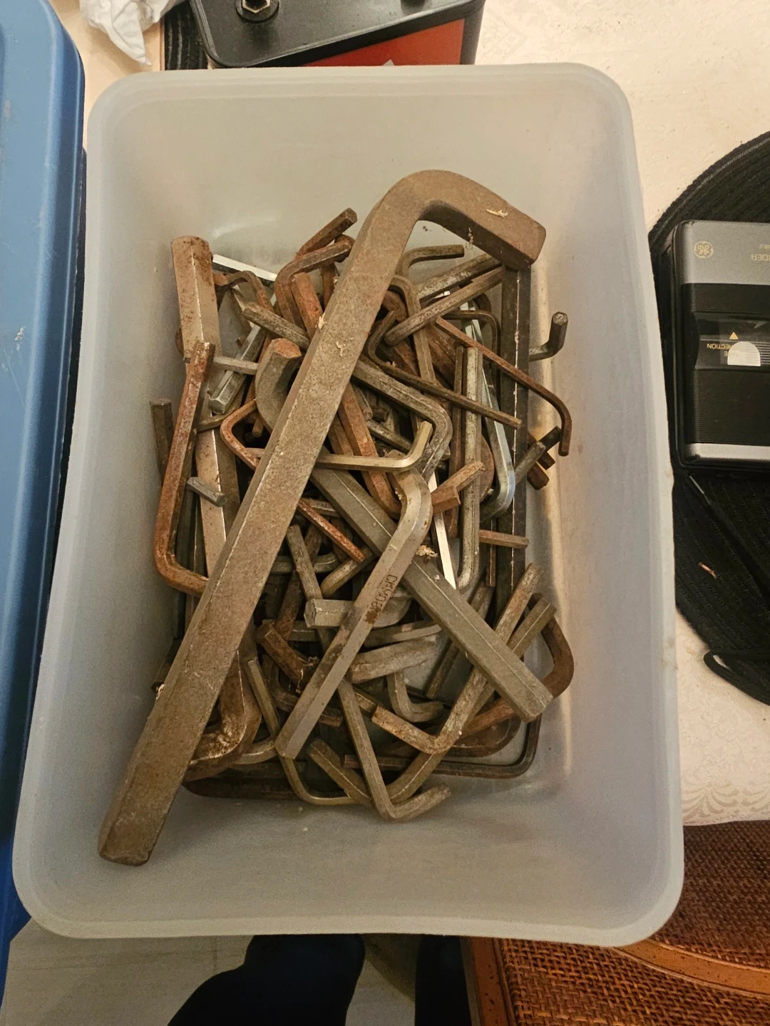 This is a big bin full of various allen keys. Many different sizes and some are a bit rusty from use. They're all metal and ready for work!