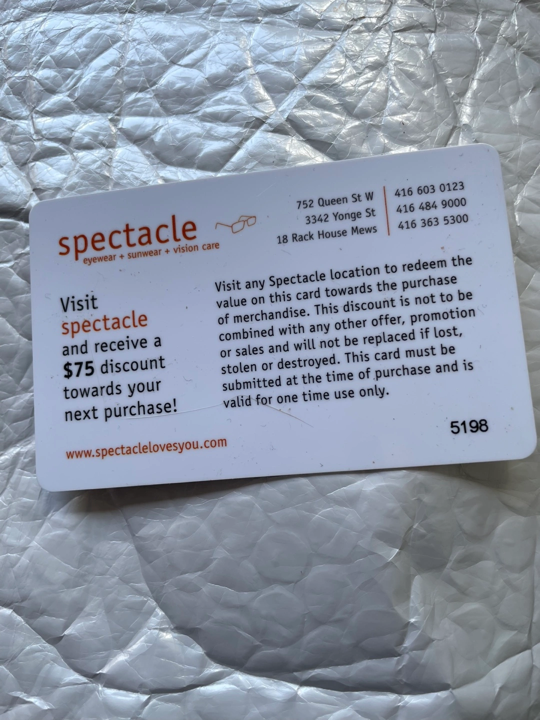 I have a Spectacle Eyewear gift card for $75 off your next purchase! It's valid for one-time use at any Spectacle location.