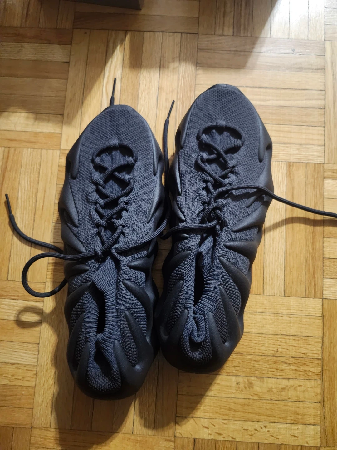 These Adidas Yeezy 450 sneakers come in a dark slate colourway. They're made with a knit upper and a unique sculpted sole. Includes original box.