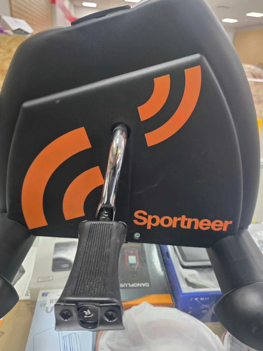 This Sportneer mini exercise bike is designed for home use. It features a digital display showing scan, time, distance, count, and calories burned. Compact and easy to use for a quick workout!