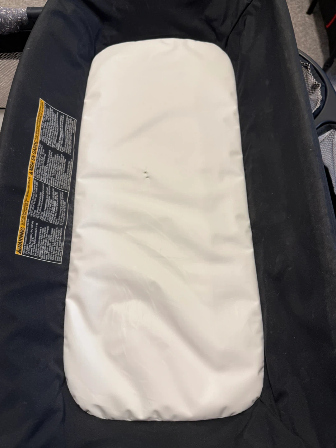 Graco Pack 'n Play portable playard with bedside bassinet. Features a convenient diaper changing station on the side with storage pockets.