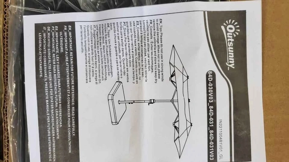 The Outsunny double-sided sun umbrella has been designed with durability in mind. The rust-free resistant steel pole and 12 steel ribs support the canopy and provide superior strength and durability.