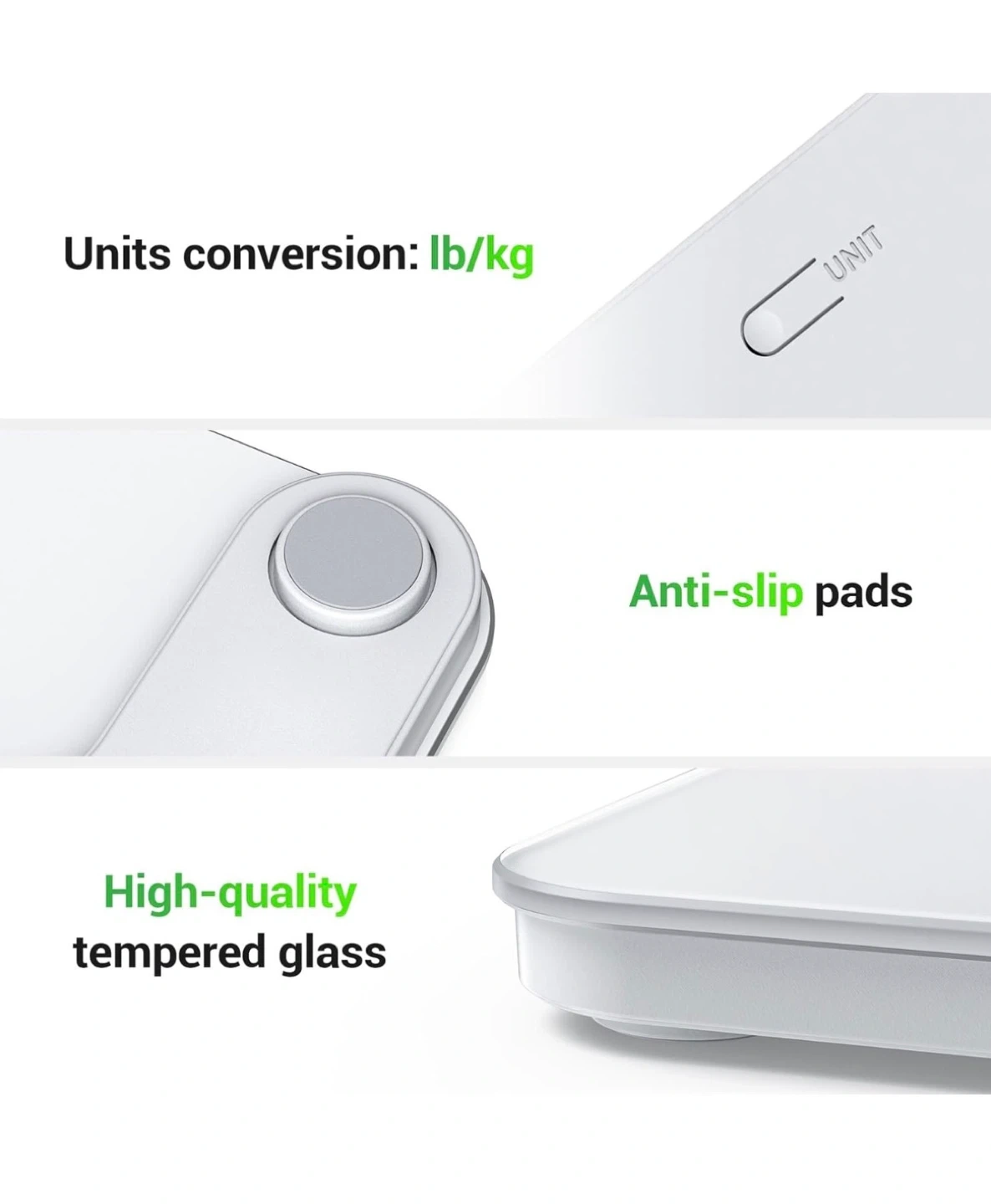 This Ovutek digital scale is made of high-quality tempered glass and features anti-slip pads. It offers units conversion between lb/kg and includes 2 AAA batteries. Its compact size makes it easily stored anywhere. This scale can last up to 255 days of one-time daily use.
