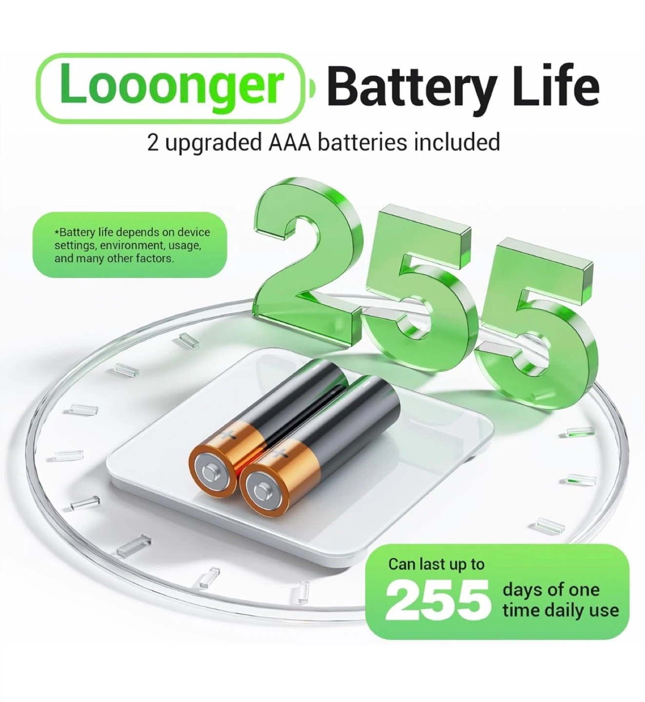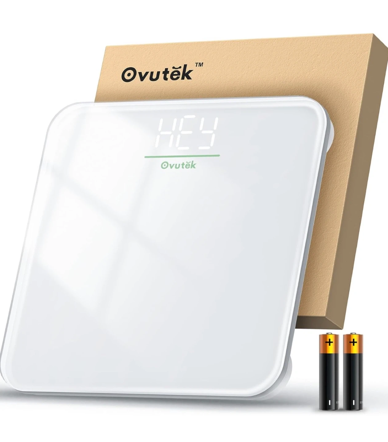 This Ovutek digital scale is made of high-quality tempered glass and features anti-slip pads. It offers units conversion between lb/kg and includes 2 AAA batteries. Its compact size makes it easily stored anywhere. This scale can last up to 255 days of one-time daily use.