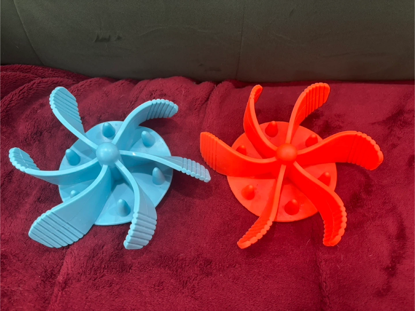 Includes one blue and one orange slow feeder bowl insert. These mats are designed to help for those who have a dog or cat that rush to eat all their food, slowing down the eating process. They feature a textured surface with suction cups on the back for easy attachment to surfaces.