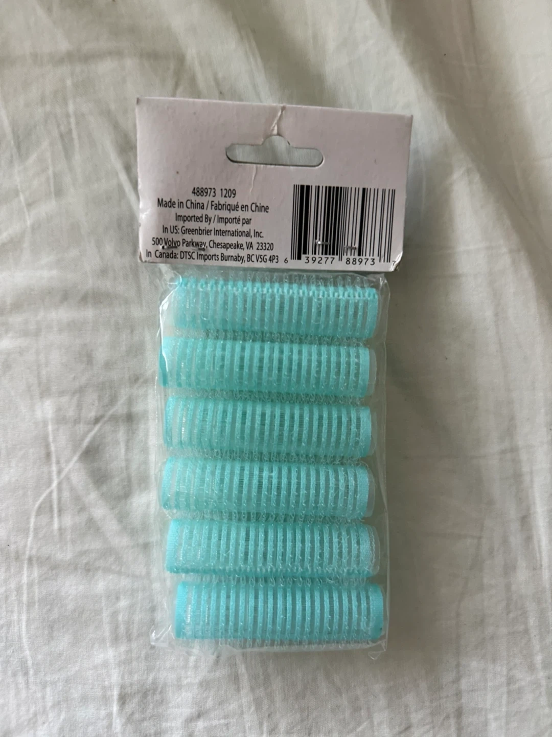 These are six turquoise self-stay rollers. They're designed for creating curls or adding volume to hair. This pack is great for achieving different hairstyles at home.