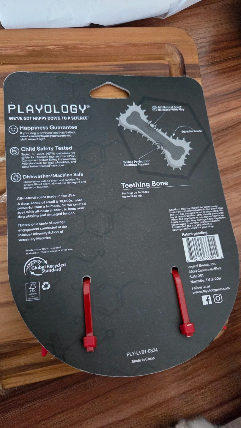 This is brand new. Very good for teething or hard-chewers. I understand the difficulty of having a dog whose chewing or playful habits need to be satisfied. This has a beef scent attractive to your dog, built with tough but safe material. Squeaker also inside, and your dog's happiness guaranteed. Please don't ask for a lower price, won't entertain such offer.