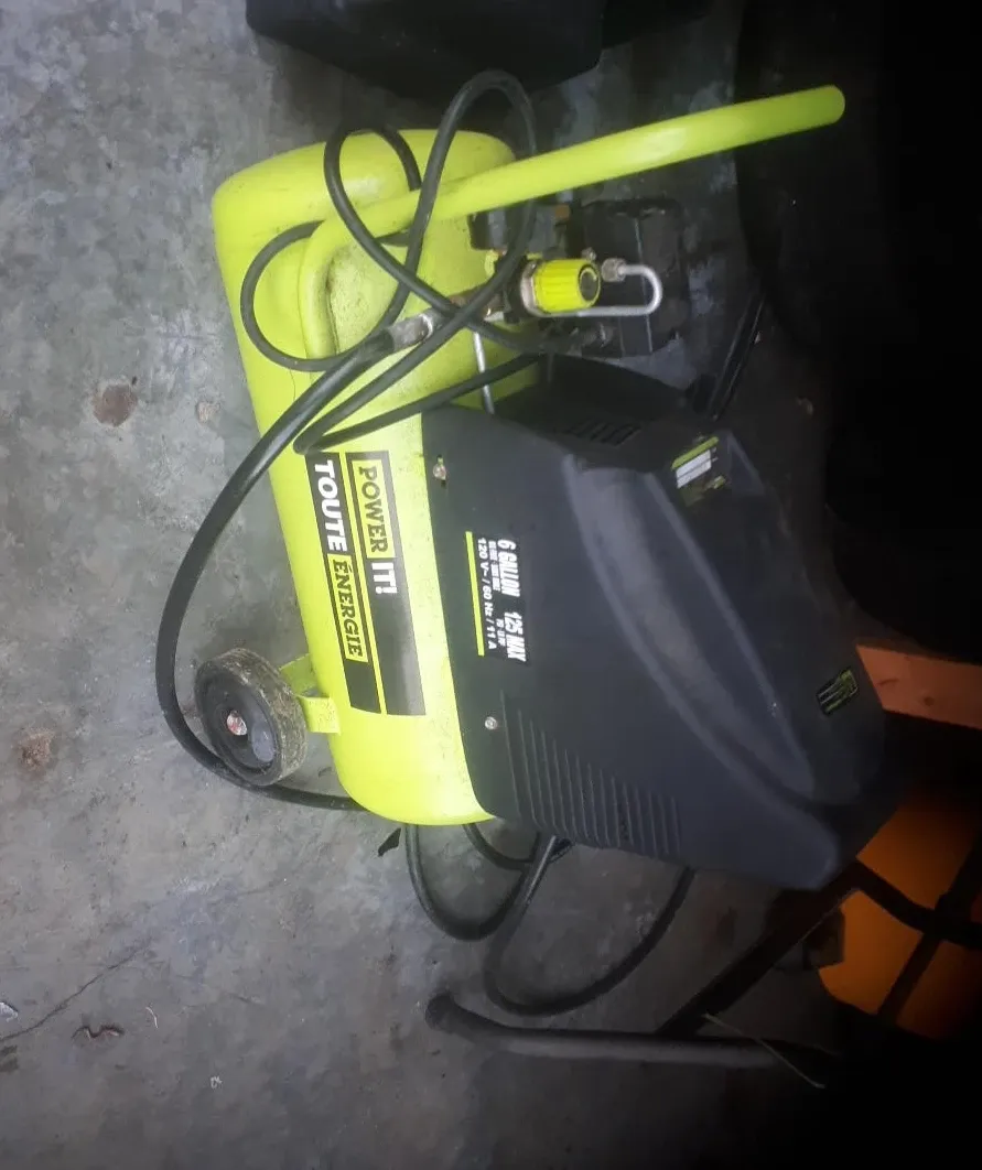 Selling a Power It! air compressor. It's a 6-gallon model with a maximum pressure of 125 PSI. It operates at 120V / 60 Hz / 11 A. Great for various tasks around the house or in the garage