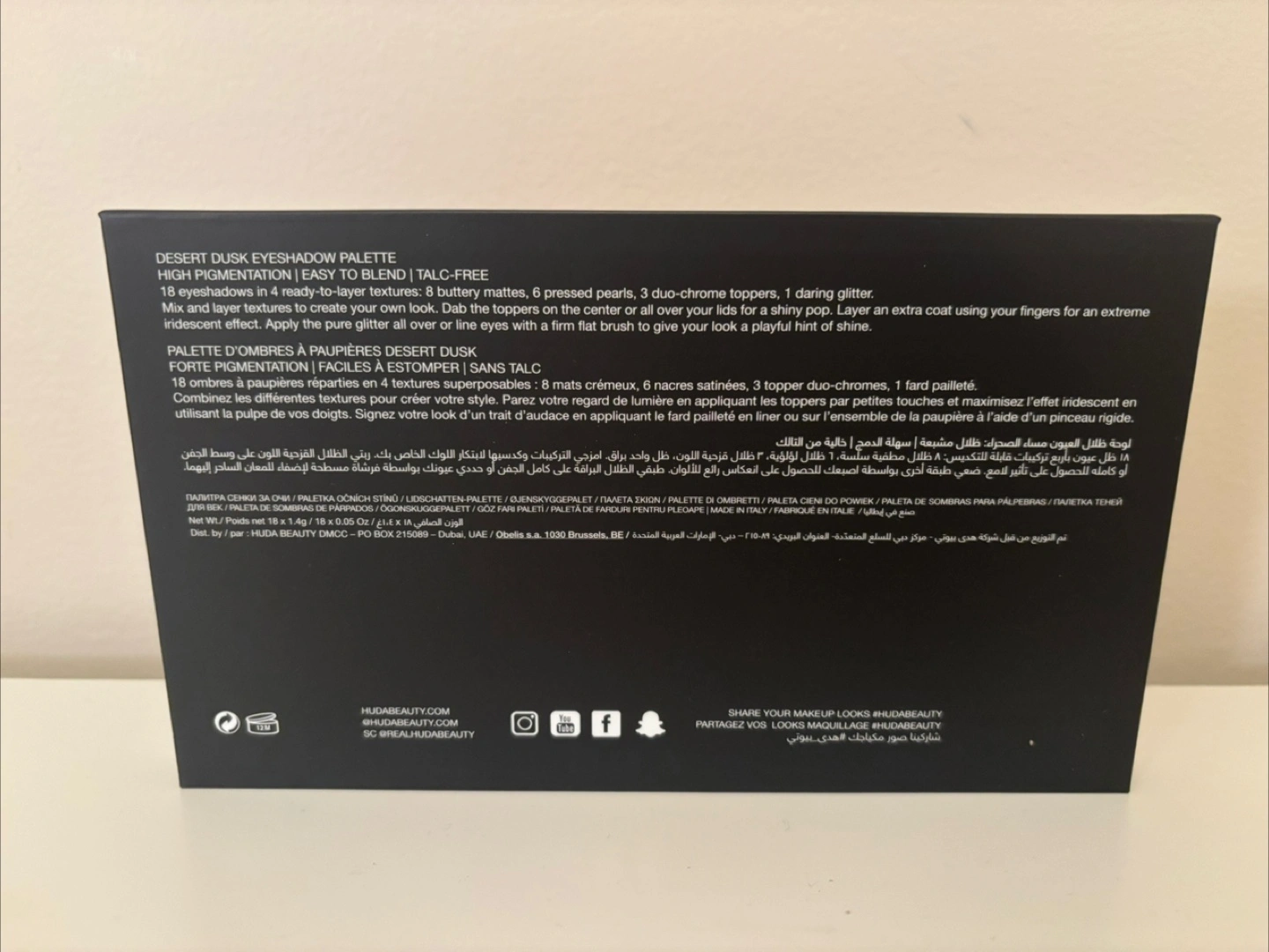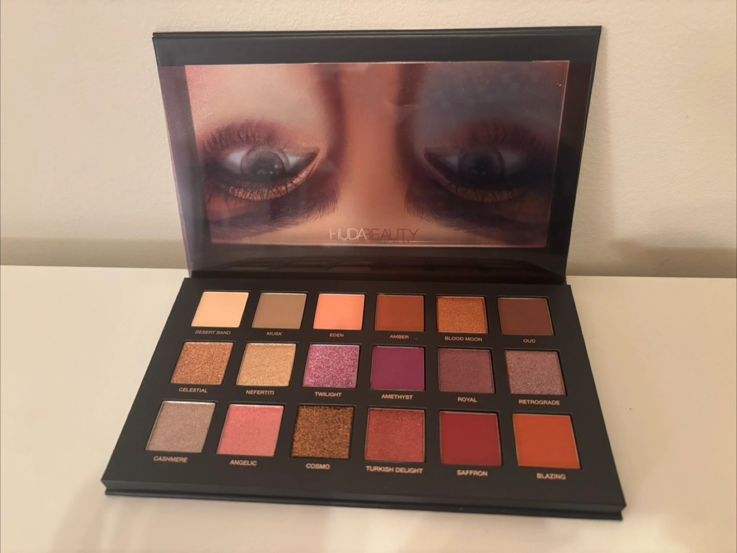 Selling a Huda Beauty Desert Dusk eyeshadow palette! It features 18 eyeshadows in ready-to-layer textures, including buttery mattes, pressed pearls, and duo-chrome toppers. Create your own unique look with this high-pigment, easy-to-blend palette