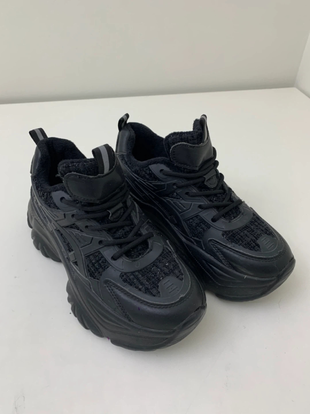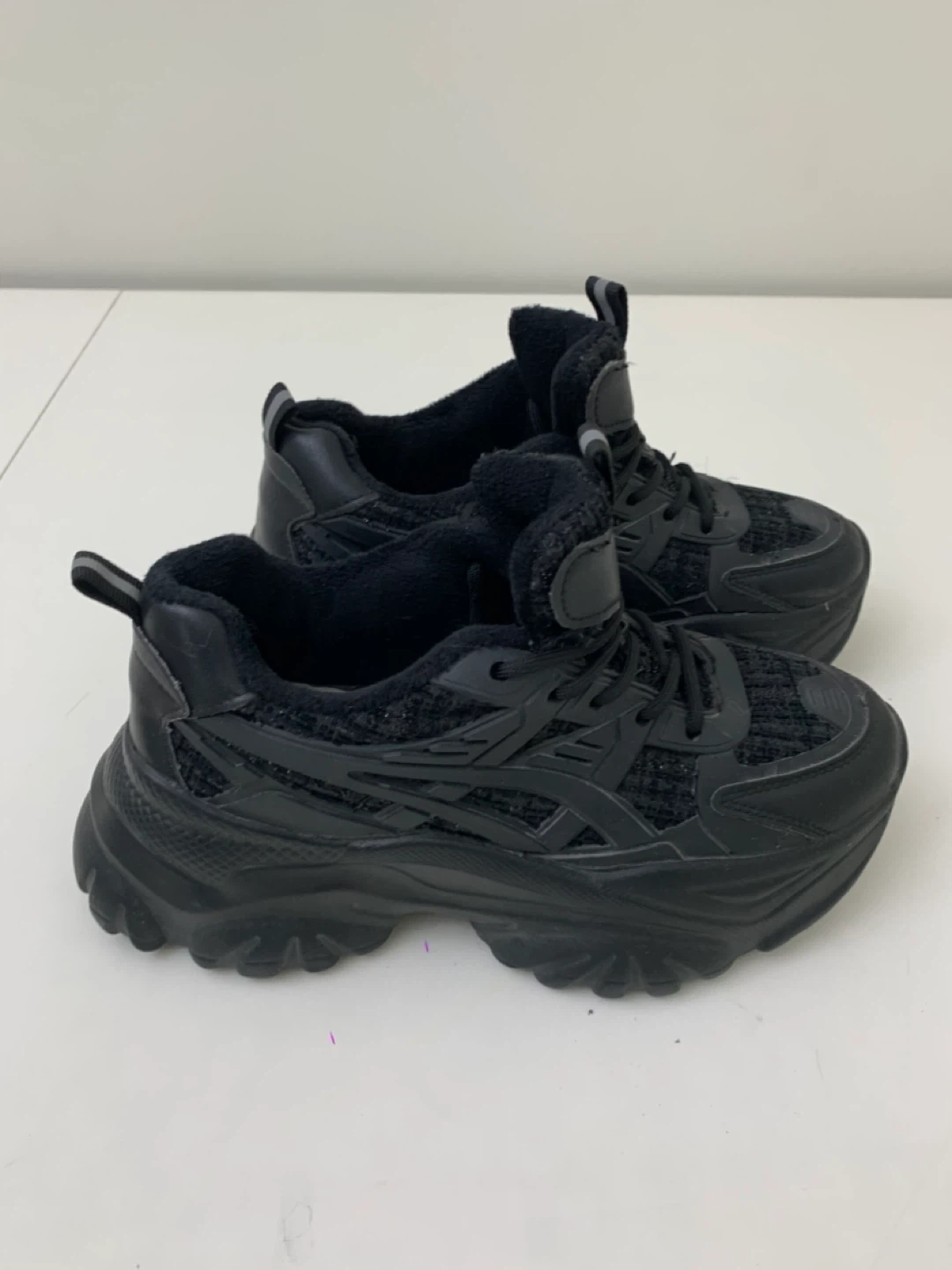 Selling a pair of stylish black fashion sneakers! They're in great shape and ready for a new owner. These sneakers would be a great addition to your wardrobe!