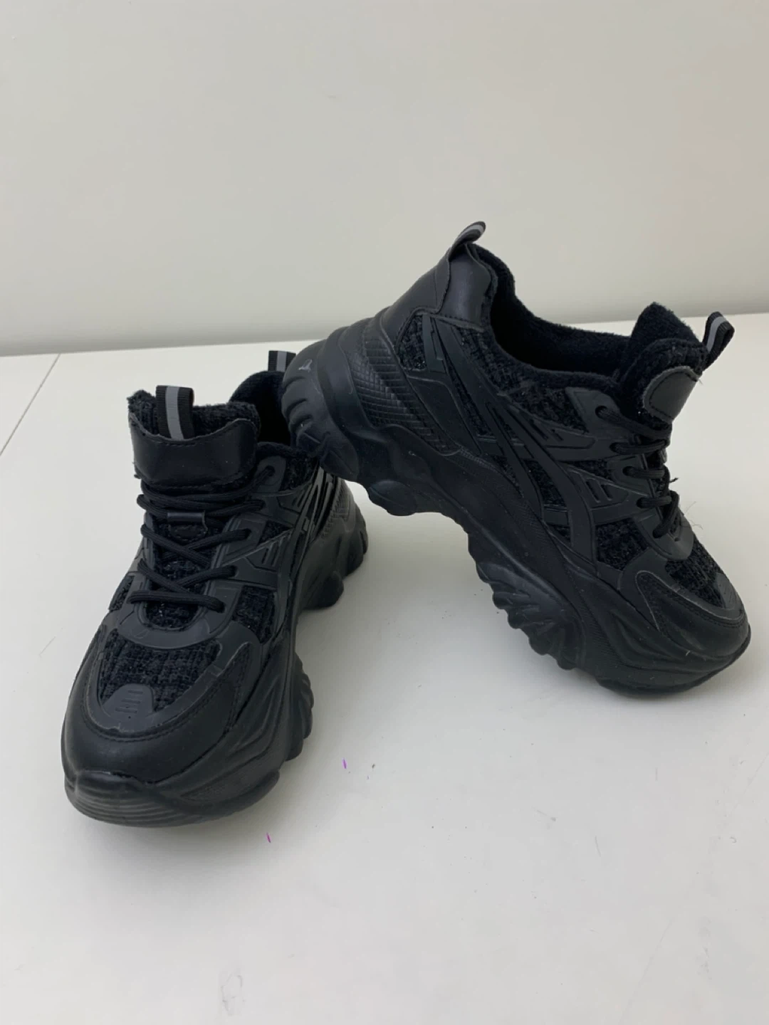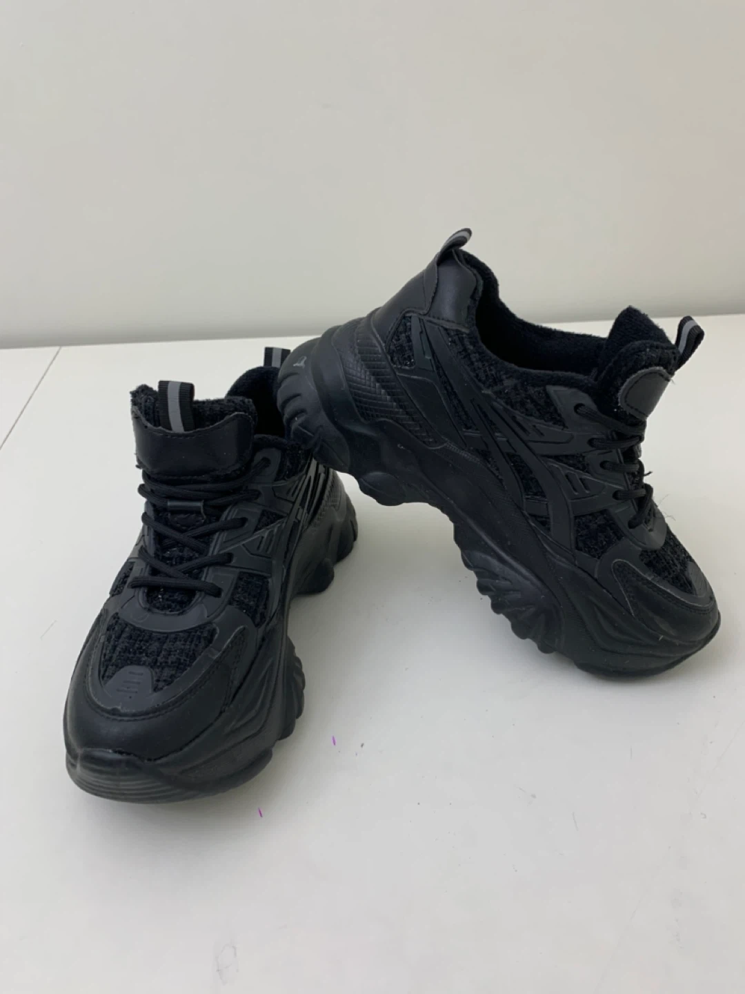 Selling a pair of stylish black fashion sneakers! They're in great shape and ready for a new owner. These sneakers would be a great addition to your wardrobe!