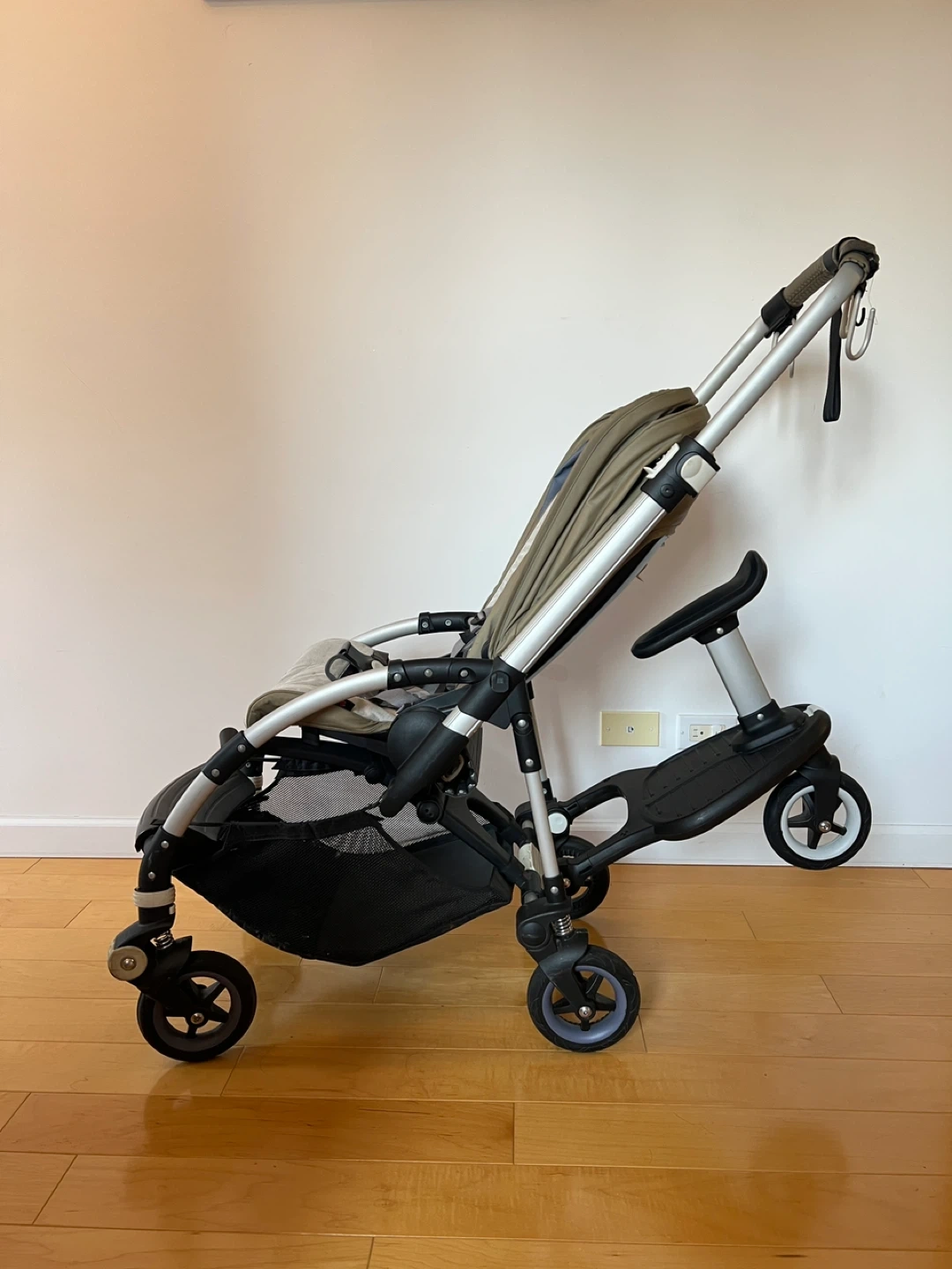 Selling a Bugaboo Bee stroller. It has a wheeled board attachment for an older child to ride along. Great for families with a toddler and an older child. The wheeled board can sell separately.